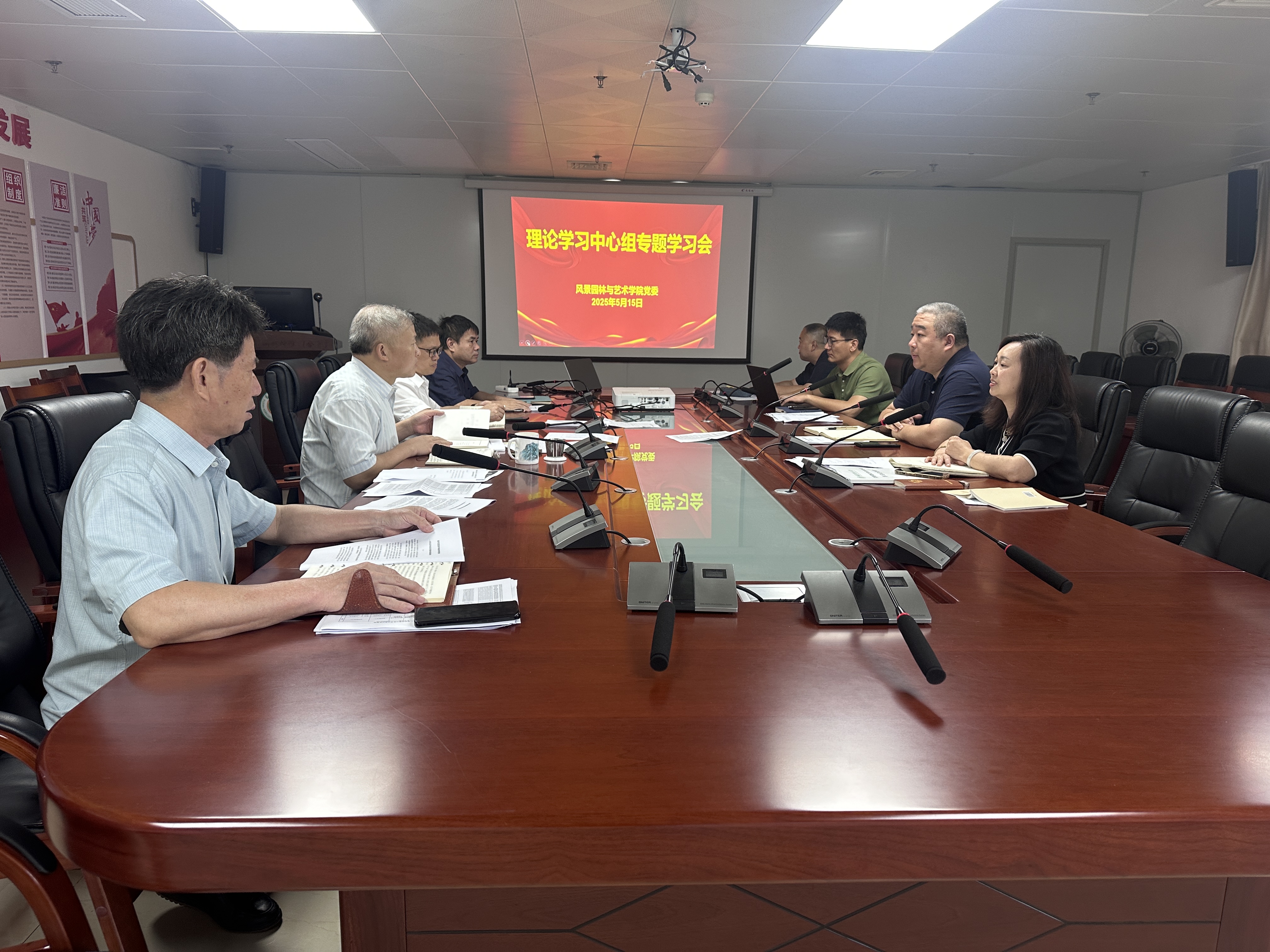 5月15日上午,风景园林与艺术学院党委在旗山校区综合楼1102会议室召开理论学习中心组专题学习会,深入学习领会习近平总书记关于加强党的作风建设的重要论述。学院党委领导班子、党政办主任、党委组织员等参加学习会。会议由学院党委书记陈祖建主持。
