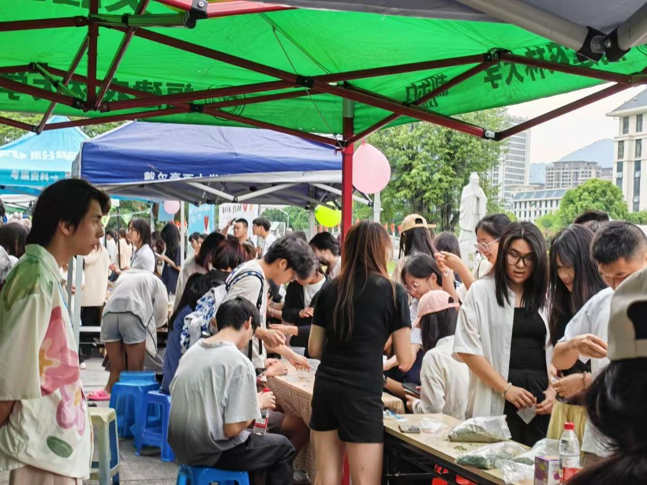 在东广场,材料工程学院联合交通与土木工程学院打造了一系列沉浸式的心灵疗愈活动。活动现场精心规划了心灵茶话会、“愈”见你我微笑墙、手作体验区、心灵体验营、素质拓展区等特色区域。