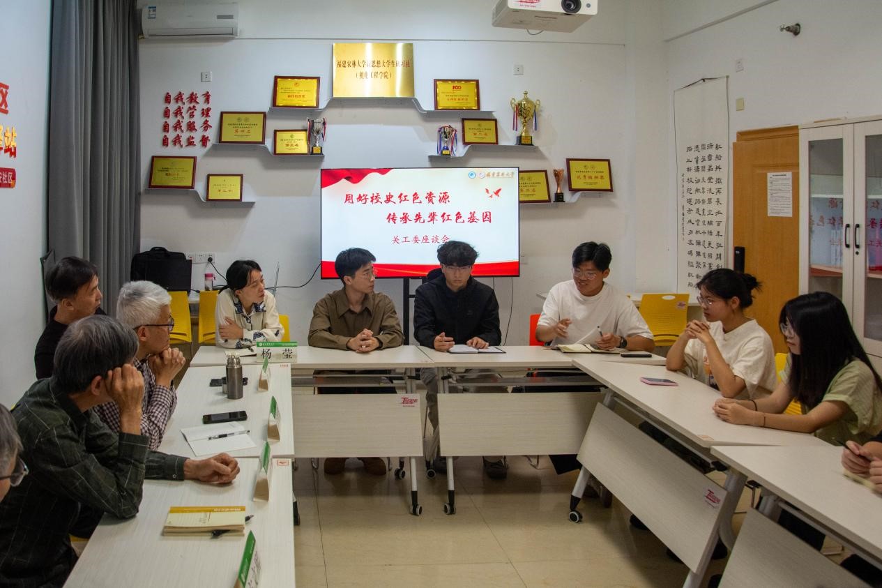 为深入挖掘校史红色资源,弘扬红色文化,传承先辈精神,4月29日下午,机电工程学院在“一站式”学生社区举办“用好校史红色资源,传承先辈红色基因”关工委座谈会。学院关工委主任杨莹、副主任庄哲峰,委员何聪惠、张翔、方文熙及学生代表十余人齐聚一堂,共话红色基因传承与新时代青年担当。