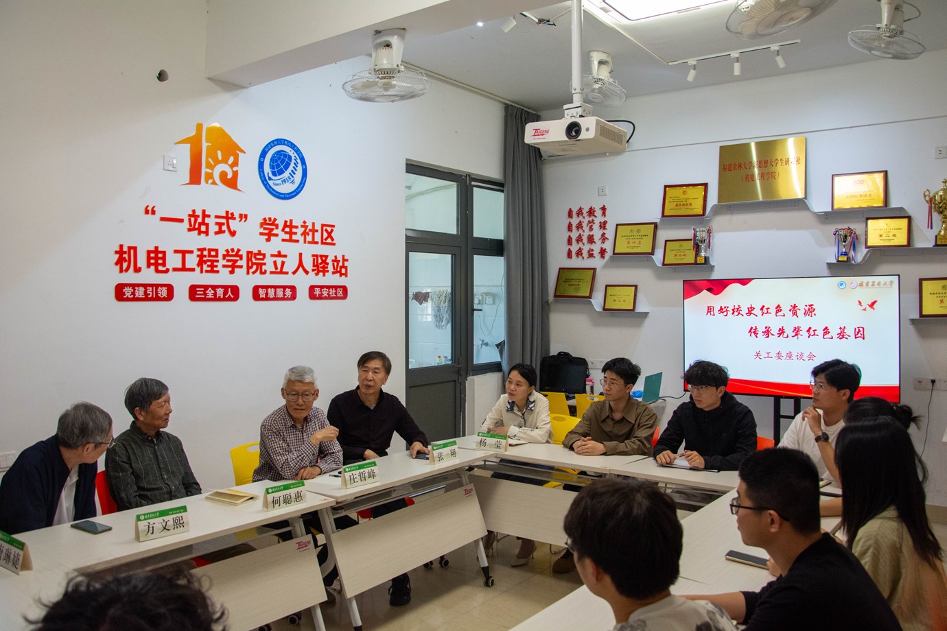 座谈会上,与会师生围绕“红色资源育人”展开热烈讨论。与会老同志通过机电行业楷模案例,生动讲述了红色精神与专业教育的融合路径。学生代表则结合参与科技竞赛、乡村振兴实践的经历,纷纷表示将从校史院史中汲取养分,以先辈精神为指引,争做时代新人。