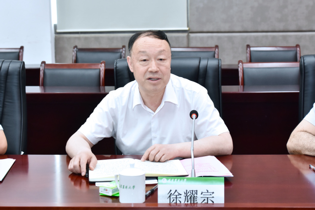 徐耀宗代表新疆农业职业技术大学向我校长期以来的支持表示感谢,对我校近年来建设发展取得的显著成效表示赞赏,介绍了新疆农业职业技术大学的历史沿革、专业建设、师资队伍等情况,希望以此次合作为新的起点,借鉴我校先进的办学治校经验,提升自身办学水平和综合实力,更好服务新疆打造中国教育“面向‘一带一路’国家开放合作桥头堡”和“教育对外合作战略高地”,共同为新疆教育科技人才高质量发展贡献力量。