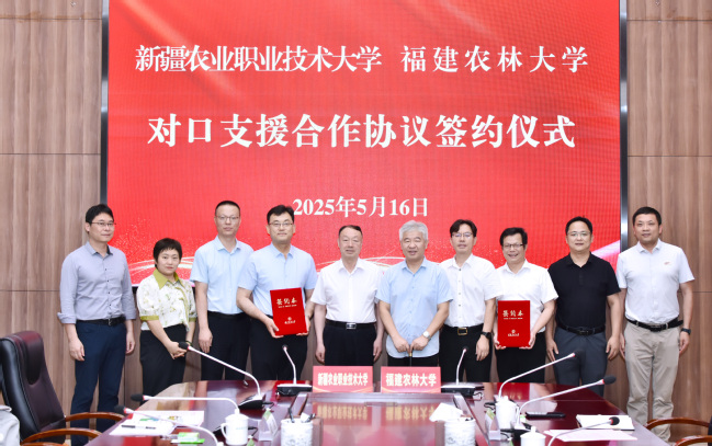 5月16日下午,我校与新疆农业职业技术大学对口支援合作协议签约仪式在明德楼武夷厅举行。新疆农业职业技术大学党委书记徐耀宗,我校党委书记赖海榕、副校长周顺桂出席,双方围绕贯彻落实新时代党的治疆方略、推动区域协调发展、深化东西部协作等开展座谈交流。签约仪式由周顺桂主持。
