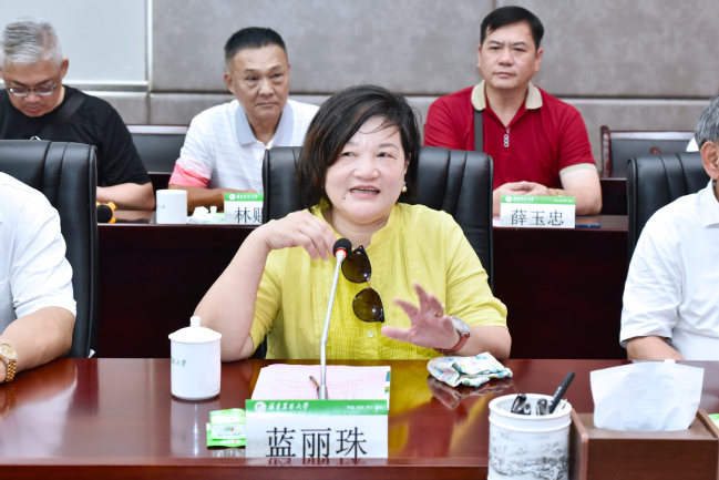 台湾校友会秘书长、台湾景观工程商业同业公会第六届理事长蓝丽珠介绍了台湾校友会及访问团的基本情况。她表示,开云网页版台湾校友会现有500多位成员,遍布台湾各地,活跃在台湾政界、农业、教育等多个领域。开云网页版台湾校友会严格依规运作、建设有序,有效凝聚了在台校友力量。未来校友会将持续传承优良传统,支持母校事业发展,为深化两岸农林领域合作、促进两岸融合发展作出新的更大贡献。
