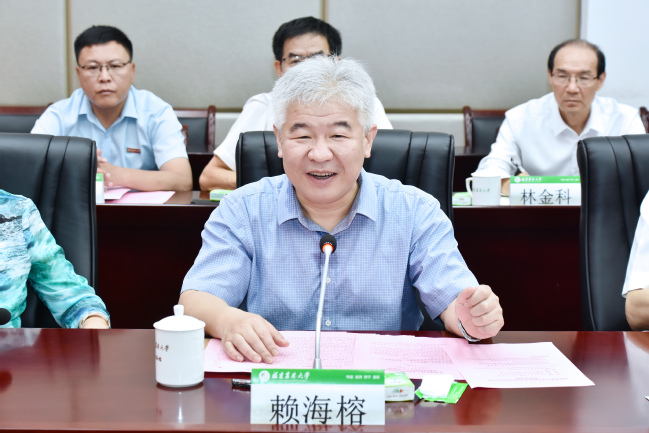 赖海榕代表学校对台湾校友访问团一行来校参观交流表示欢迎。他简要介绍了学校近年来取得的建设发展成效,重点介绍了学校近十年来发表19篇CNS主刊论文,10个学科进入ESI全球前1%、2个学科进入前1‰,牵头获批农林生物安全全国重点实验室,主导制定乌龙茶和白茶2项国际标准等办学成果。他表示,台湾校友会自成立以来,在筹措办学资金、协同培养人才、促进学术交流、扩大宣传影响等方面做了大量富有成效的工作,为母校的建设和发展作出了重要贡献。台湾校友们在台湾和祖国大陆各界创业发展,在促进两岸繁荣稳定方面发挥了积极作用。他希望,台湾校友会和广大台湾校友一如既往地关心支持母校,在台师引进、科技创新、开放办学、校园建设、促进两岸融合发展等方面继续为母校发展汇聚力量,助力学校“双一流”建设,为加快建设两岸融合发展示范区贡献力量。