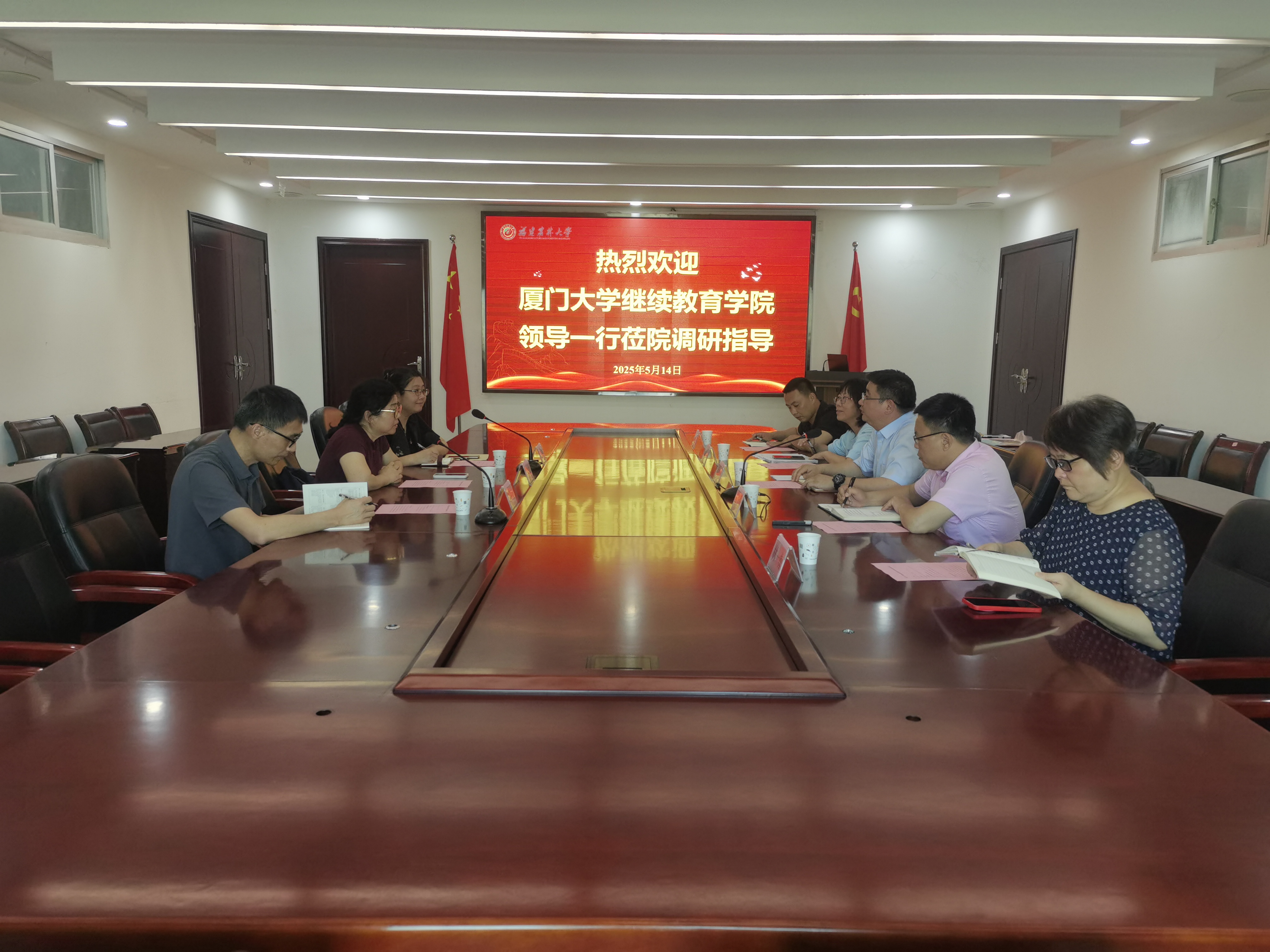 5月14日下午,厦门大学继续教育学院党总支书记、院长吴国瑛一行到乡村振兴学院开展调研交流。学院副院长(主持工作)范胜龙、副院长李文灿、继续教育与培训部相关人员出席座谈会,会议由范胜龙主持。