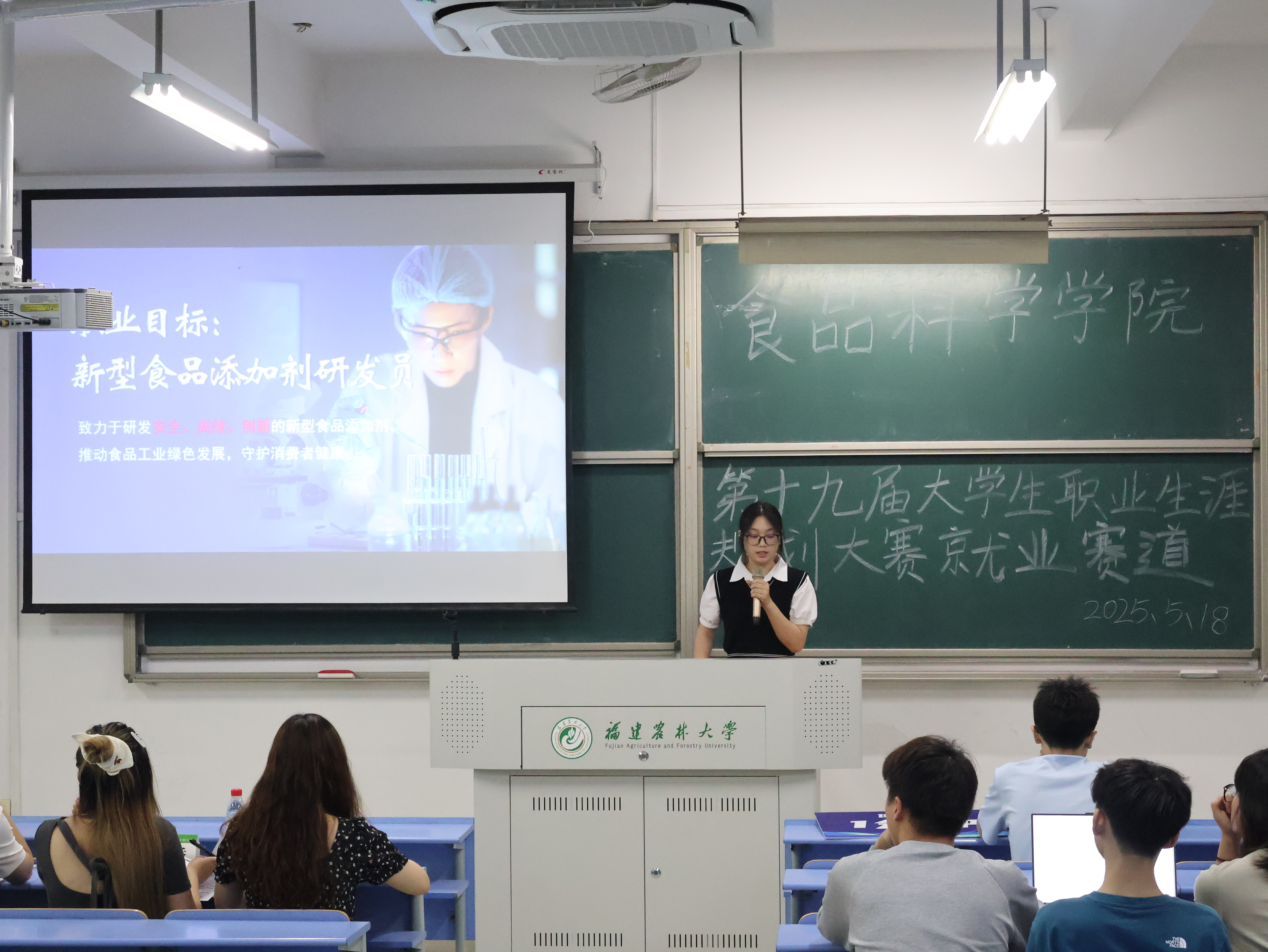 5月18日下午,食品科学学院第十九届职业规划大赛决赛在禧强楼403、404举行。院党委副书记吴有平及各年级辅导员作为评委出席活动,部分新生及各年级派出代表前来观摩赛事。