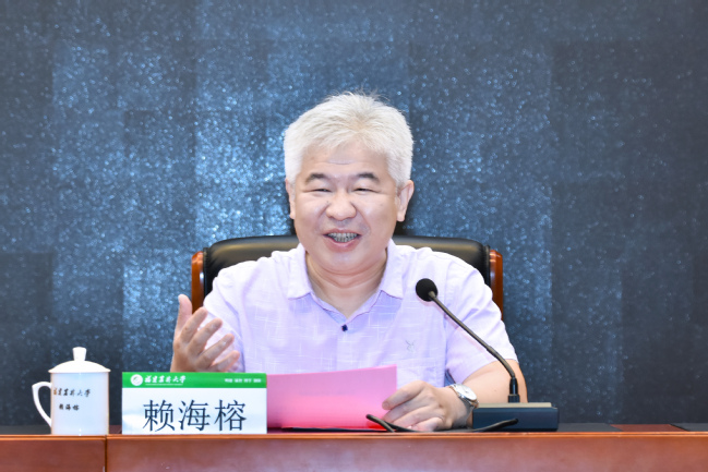 在明德楼十三层会客室,赖海榕代表学校为饶子和院士颁发“学校发展顾问”聘书,感谢饶子和院士对学校建设发展的关心支持。他介绍了学校牵头获批建设全国唯一的农林生物安全领域全国重点实验室、发表19篇CNS国际顶刊论文、实施院士托举工程、推进植物保护和林学两个一流培优学科建设、加强菌草科技创新和应用推广以及多措并举服务两岸融合发展等方面取得的明显成效,期待饶子和院士在人才培养、学科建设、科学研究、平台建设等方面给予指导,推动我校更好建设农林特色鲜明的全国一流高校。