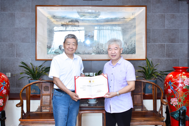校党委书记赖海榕向饶子和院士颁发“学校发展顾问”聘书