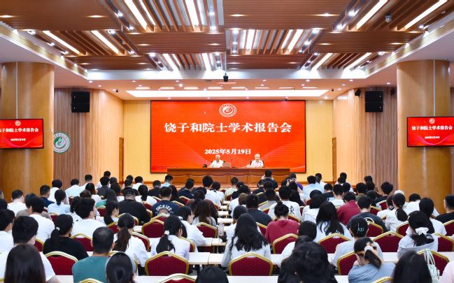 赖海榕主持报告会,对饶子和院士的学术报告给予高度评价,希望与会师生学习饶院士潜心科研、勇攀高峰的精神,加快突破农林生物安全等关键核心技术,为推动农业农村现代化、建设农业强国作出应有贡献。
