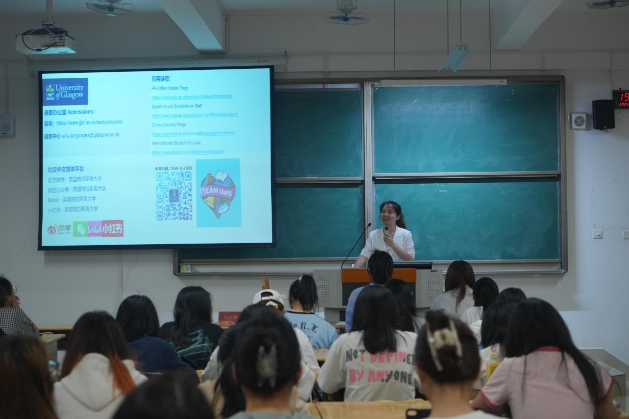 5月15日晚,戴尔豪西大学联合学院(国际学院)在教学实验楼103举办全球胜任力工作坊第七期活动。活动特邀格拉斯哥大学中国区招生官 Serena Li老师与新通教育刘金辉老师作为主讲嘉宾,围绕海外升学规划与竞争力提升展开深度分享,吸引百余名学生参与,为学子拓宽国际视野、科学规划升学路径提供专业指导。