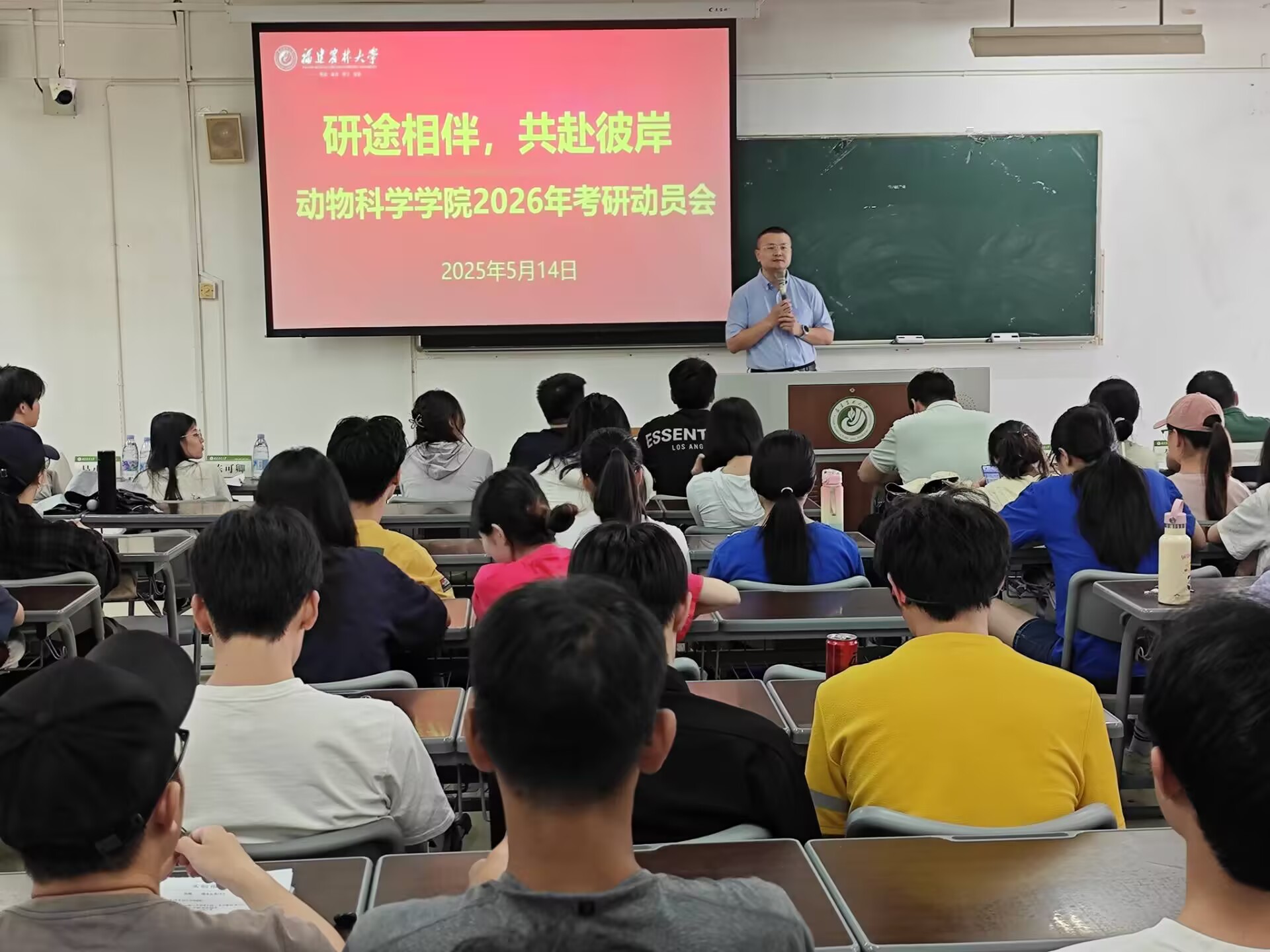 近日,为进一步激发学生考研热情,全面推动考研升学工作,动物科学学院在田家炳楼103教室召开2026年考研动员会,学院副院长(主持工作)郭桂杰、学院党委副书记贺鹏、系主任、班主任、辅导员以及2026届毕业生参加会议。会议由辅导员张淑华主持。
