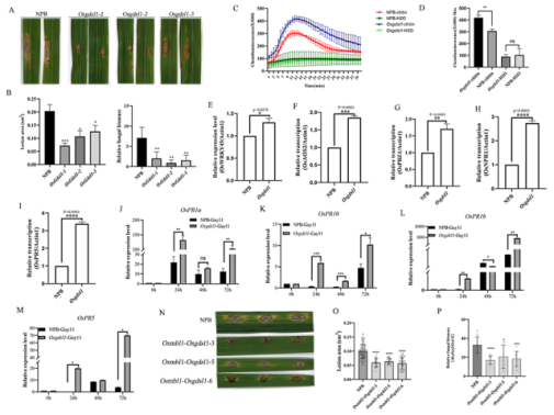 稻瘟病作为全球水稻生产的毁灭性病害,由丝状真菌Magnaporthe oryzae引起,每年造成约30%的产量损失。研究团队前期工作发现,水稻jacalin相关凝集素OsMbl1在模式触发免疫(PTI)中发挥重要作用。本研究通过酵母双杂交、双分子荧光互补等实验,揭示了OsMbl1与OsGdsl1存在特异性蛋白互作。OsGdsl1作为具有脂肪酶活性的关键蛋白,其亚细胞定位集中于脂质体及质外体,且对稻瘟菌侵染及植物激素处理具有显著响应。研究发现,OsGDSL1基因敲除突变体表现出显著增强的稻瘟病抗性,并伴随活性氧(ROS)爆发增强及病程相关蛋白(PR)基因的上调表达(图1)。