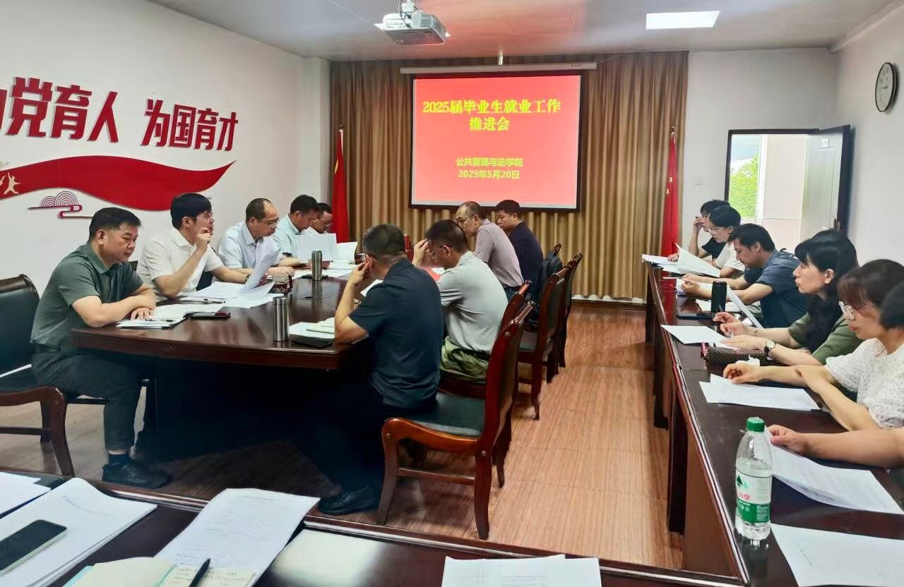 5月20日上午,公共管理与法学院在院办416会议室召开2025届毕业生就业工作推进会,学院领导班子成员、各系主任、毕业班班主任、辅导员参加会议。会议由学院党委书记蓝天水主持。