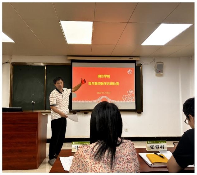为加强师德师风建设与锤炼教学基本功,充分发挥教学竞赛对教师队伍素质提升的示范引领作用,落实“立德树人”根本任务,5月20日,园艺学院在园艺楼 214 举行青年教师教学讲课比赛。比赛特邀教务处副处长叶玲娟、农学院教学副院长吴仁烨、资环学院教学副院长张黎明、机电学院教学副院长郑书河及国家教学成果二等奖获得者、学院关工委吴少华担任评委。来自学院各专业的 11 位青年教师参与角逐,学院相关领导、教学管理人员及部分教师现场观摩。
