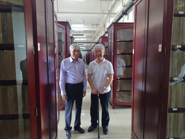 在浙江天皇药业有限公司调研,与陈立钻董事长在藏书楼查阅古籍