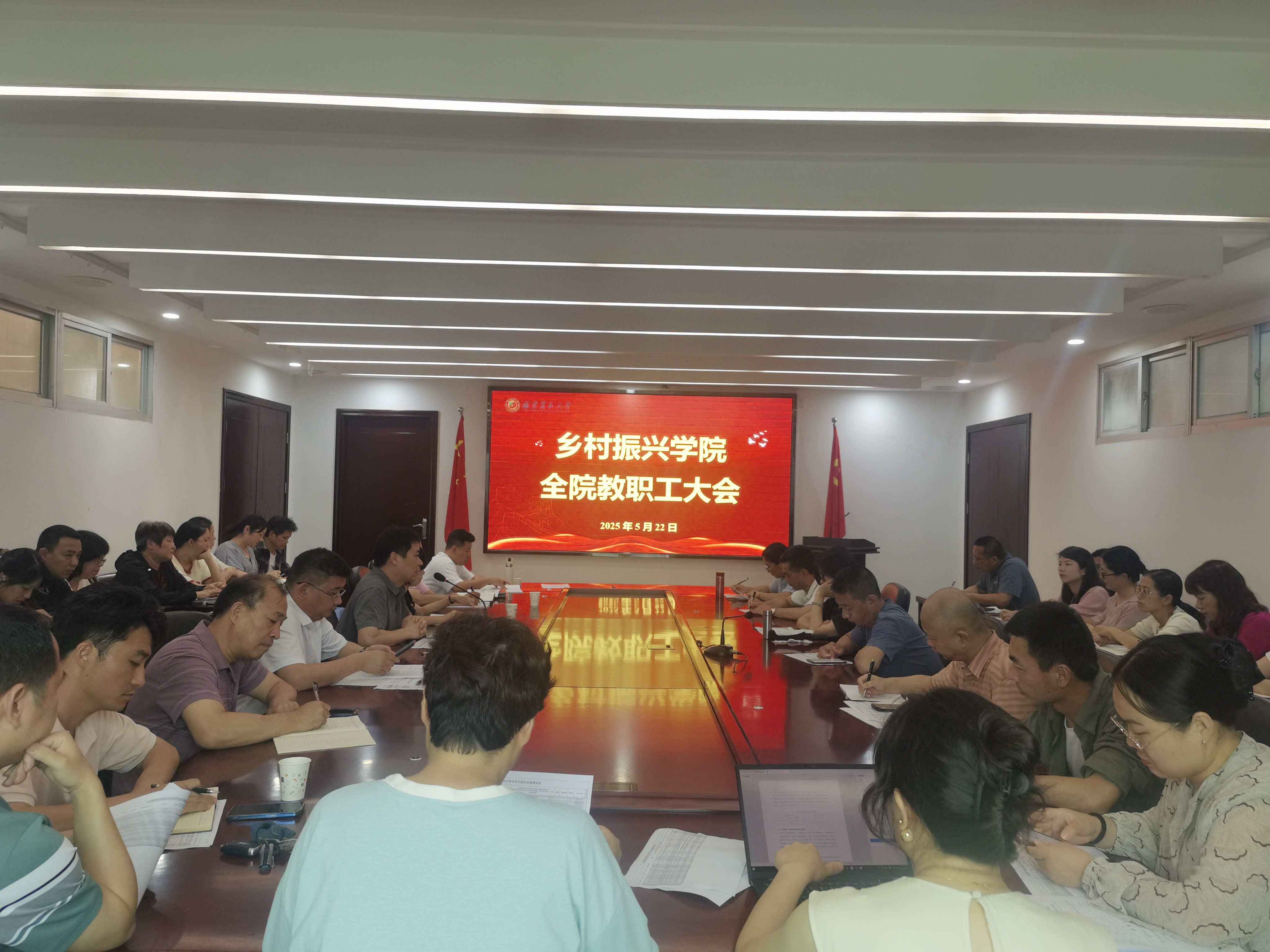 5月22日下午,乡村振兴学院在东苑512会议室召开全院教职工大会,学院领导班子成员、全体教职工参加。会议由学院党委副书记(主持工作)曹滨斌主持。