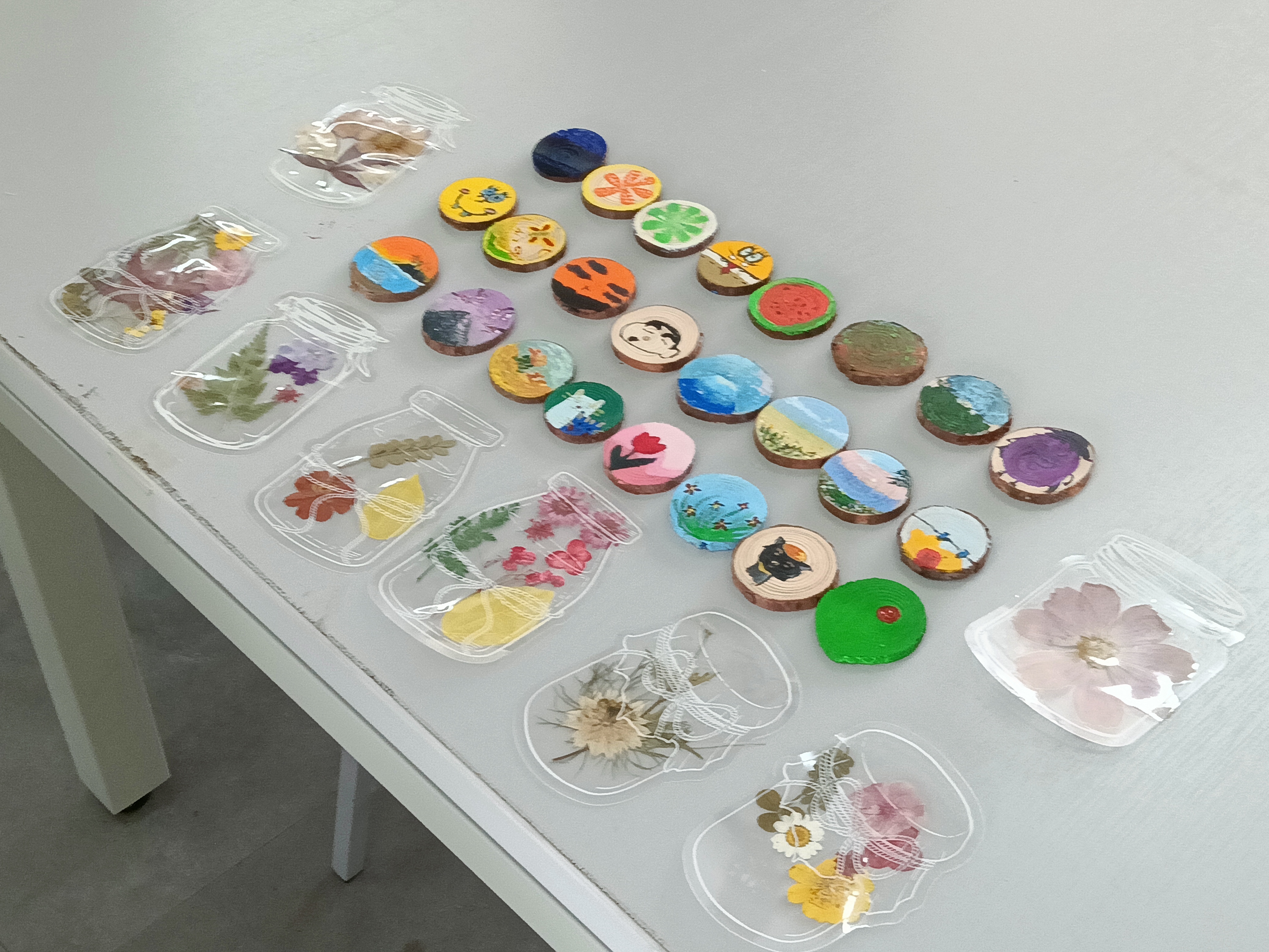 活动中,营员们精心挑选木片,以画笔绘出晨雾、鸟雀、花朵等自然景象,木纹与色彩相映成趣。在干花书签制作环节,大家修剪娇艳干花,小心封存,让春日诗意化作能与自然对话的精美书签。零食默契大考验环节,营员们将野餐搬进室内,进行零食颜色默契小游戏,营员们边分享零食边聊天谈心,在雨天收获满满欢乐与成长。