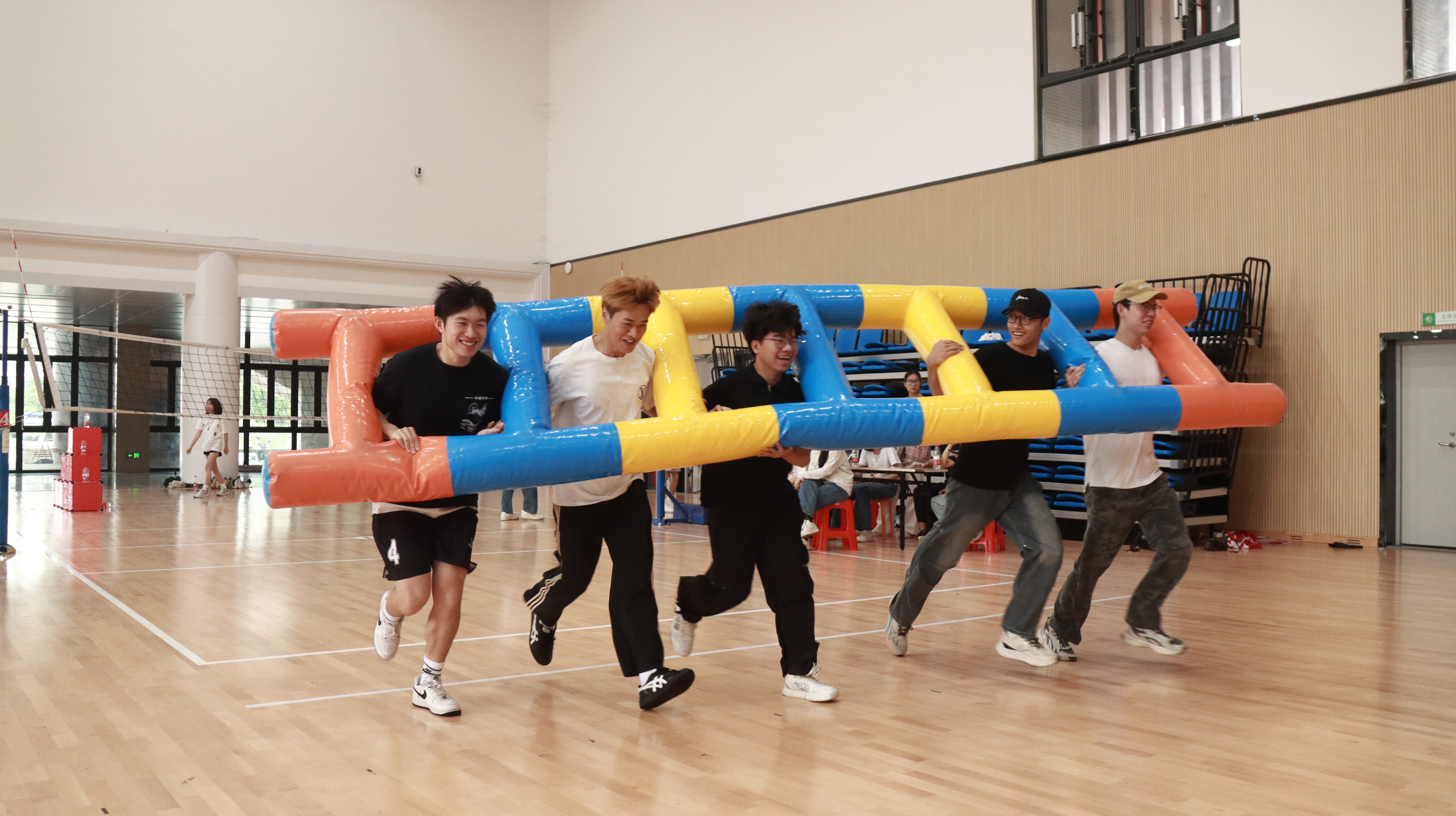 活动精心打造两大特色体验区。竞速比拼区内,"充气云梯"考验着团队的默契配合,参与者需齐心协力搬运云梯,演绎着速度与协作的完美结合;"球球大作战"则通过力量碰撞完成挑战,欢声笑语洒满赛场。更具挑战性的"川流不息""愤怒的小鸟"等创新项目,将策略规划与精准执行融为一体,让参与者在竞技中深刻体会"1+1>2"的团队真谛。