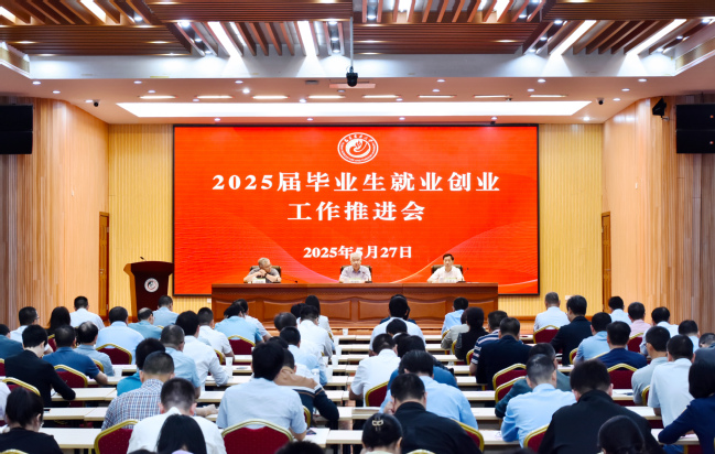 5月27日上午,我校在常盛会议中心召开2025届毕业生就业创业工作推进会,深入贯彻落实习近平总书记关于就业创业工作的重要指示批示精神,对学校2025届毕业生就业创业工作进行再动员、再部署、再推进、再落实。校党委书记赖海榕、校党委副书记曾华平、副校长唐振鹏出席会议,会议由曾华平主持。