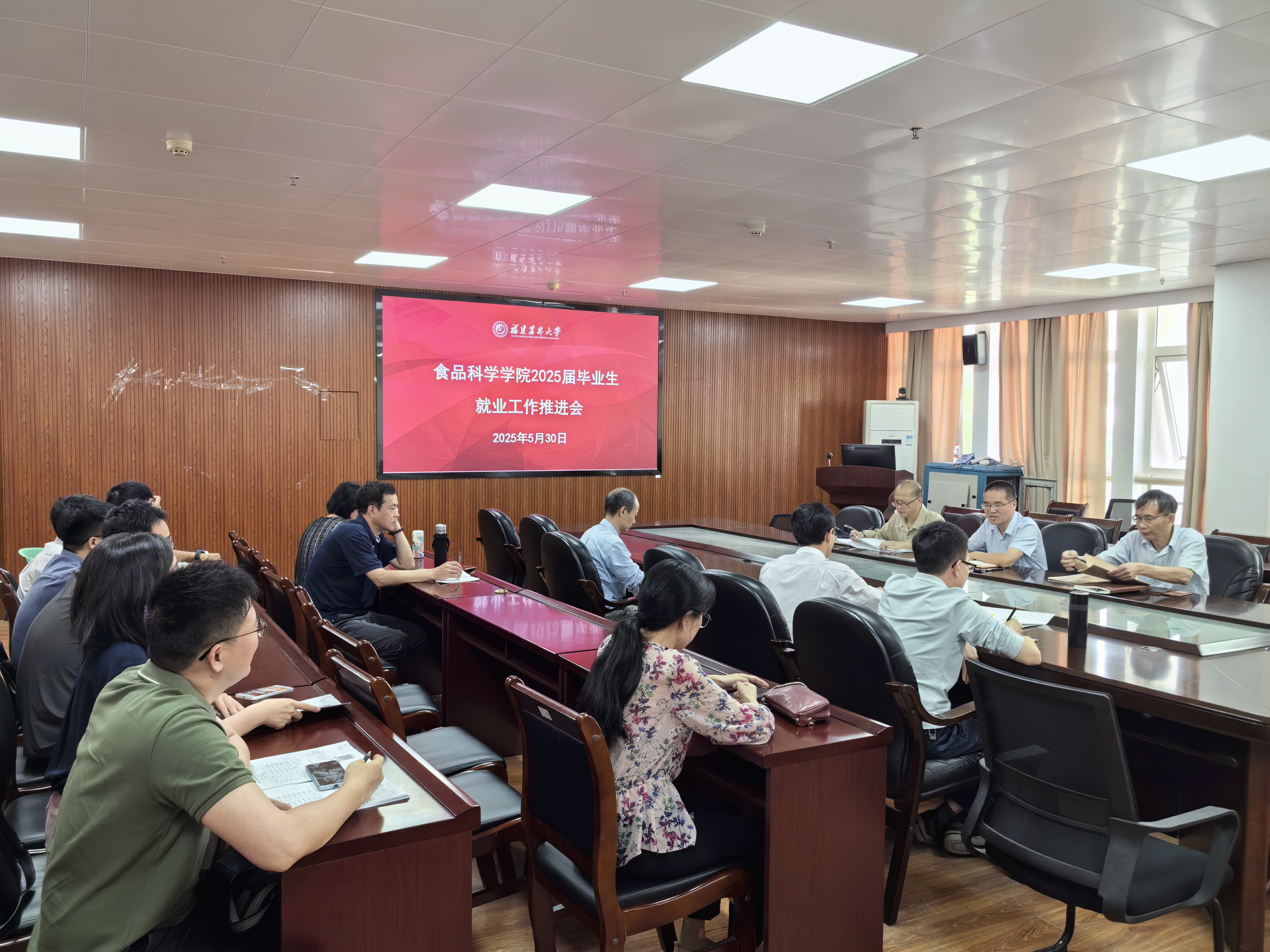 为进一步推动毕业生高质量充分就业,5月30日下午,食品科学学院于院办310会议室召开2025届毕业生就业创业工作推进会。学院党政领导、各系主任、毕业班辅导员及部分教师代表参加会议。