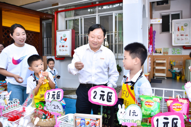 节日前夕,我校附属幼儿园内,处处回荡着欢声笑语,洋溢着喜庆欢乐的节日氛围。校领导认真观看了充满童趣的手工作品和走秀表演,参观了集市区、戏水区等“六一”游园活动现场,察看了幼儿园硬件设施和园区环境,了解幼儿园办学情况、师资队伍、特色课程等,并与小朋友们进行了亲切活泼的游戏互动,颁发了六一礼品,祝愿小朋友们节日快乐、健康成长。