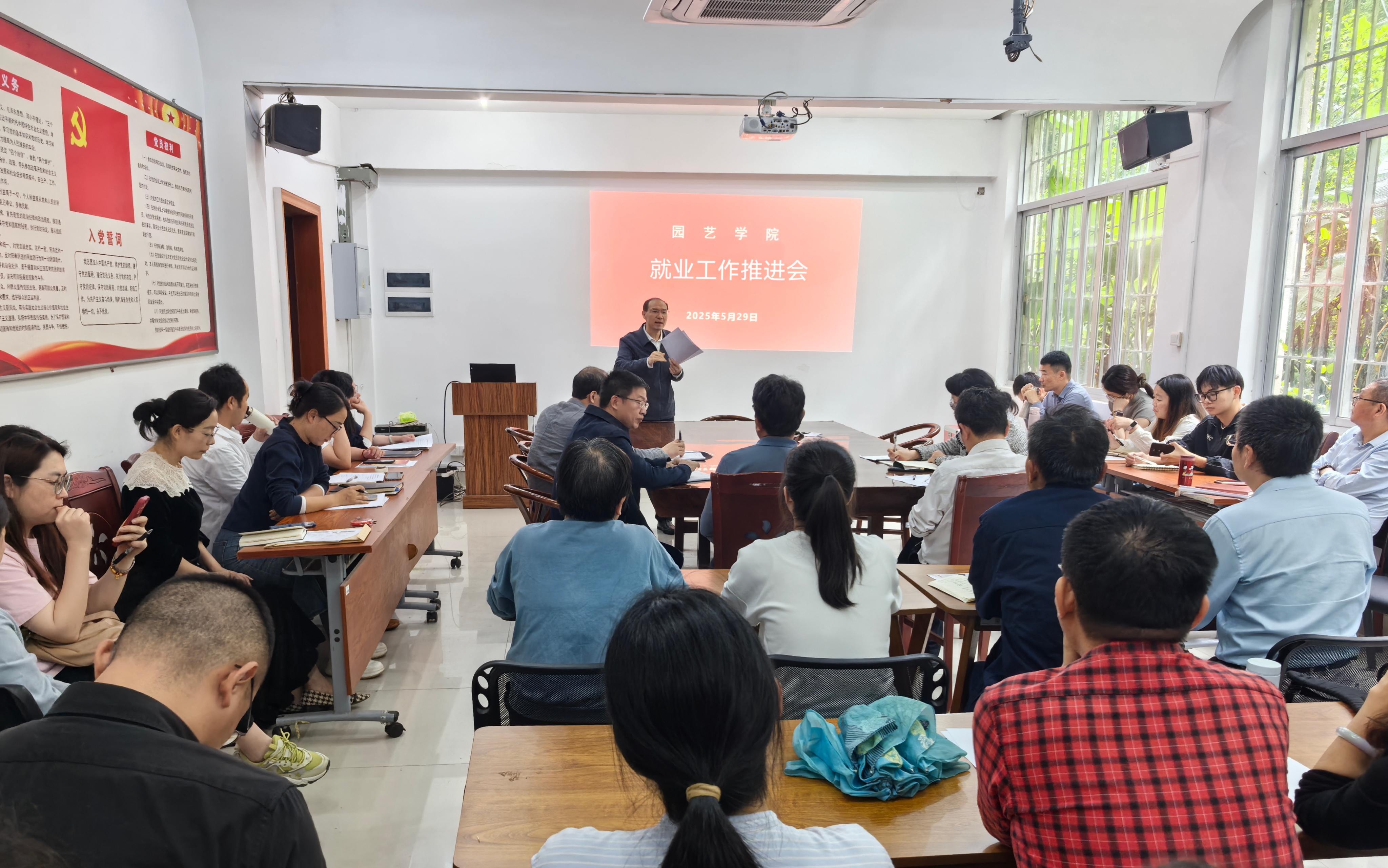 5月29日,园艺学院在学院一楼会议室召开2025届毕业生就业创业工作推进会,全面部署2025届毕业生就业工作,构建全员参与、全程贯通、全方位联动的就业工作格局。学院党政领导班子成员、毕业班班主任及全体辅导员及全体导师参会,会议由学院党委书记林金科主持。