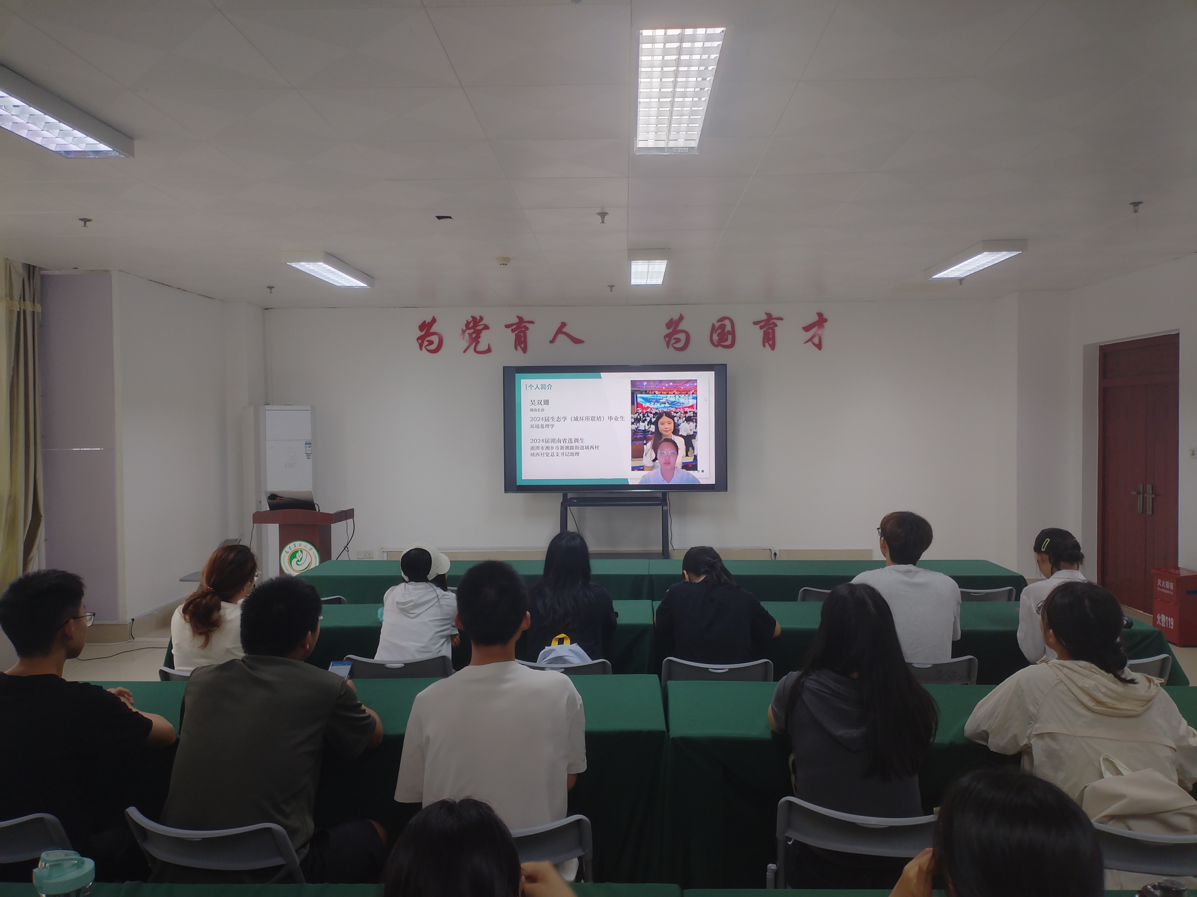 吴双珊着重分享其考取湖南省选调生的备考经验。她建议同学们在备考前依据自身特点制订科学合理、贴合实际的学习计划,并分享了备考过程中的高效学习方法。她鼓励同学们保持积极乐观的心态,以稳定坚韧的心理状态应对挑战,缓解备考压力、克服倦怠情绪。