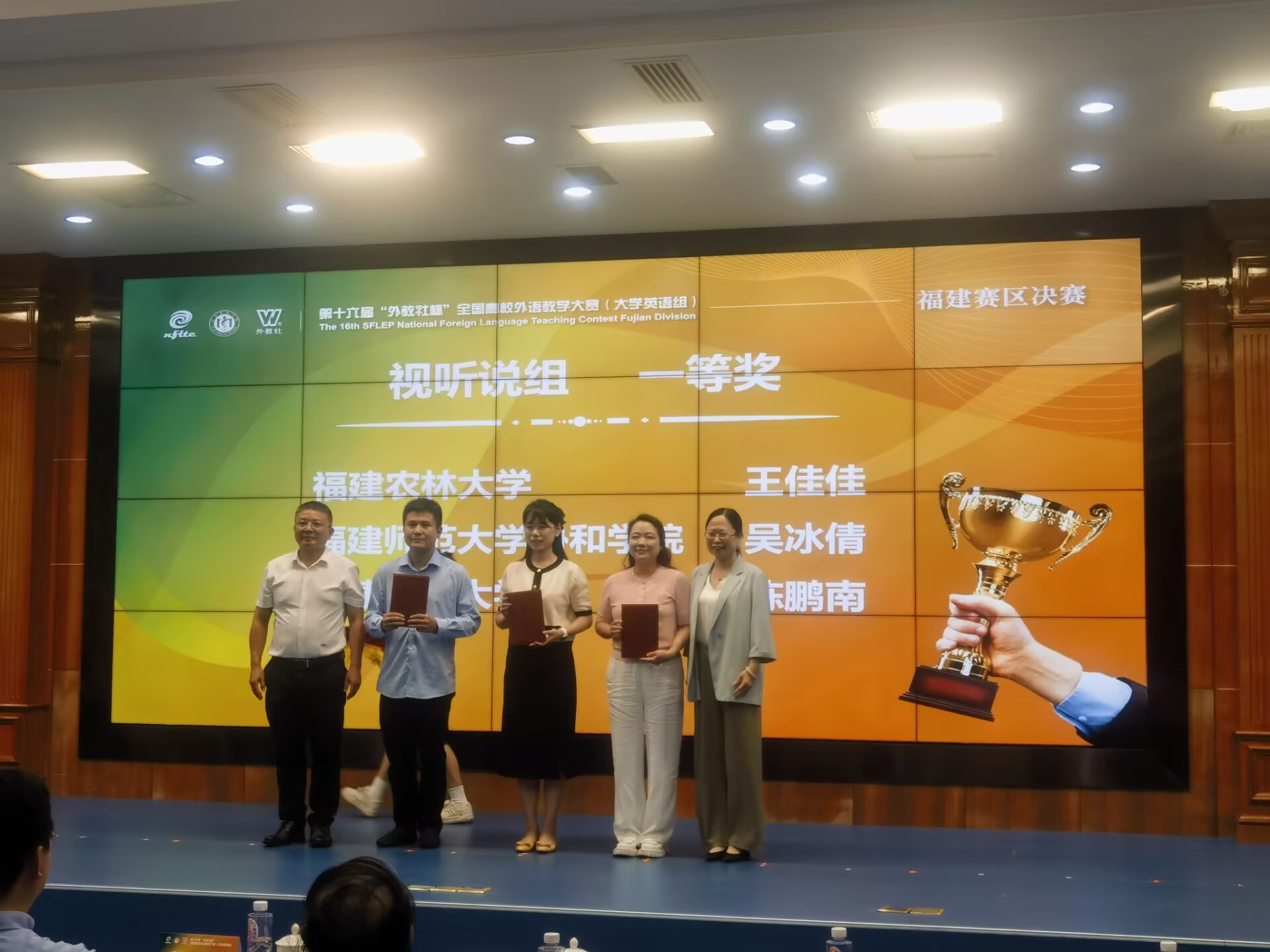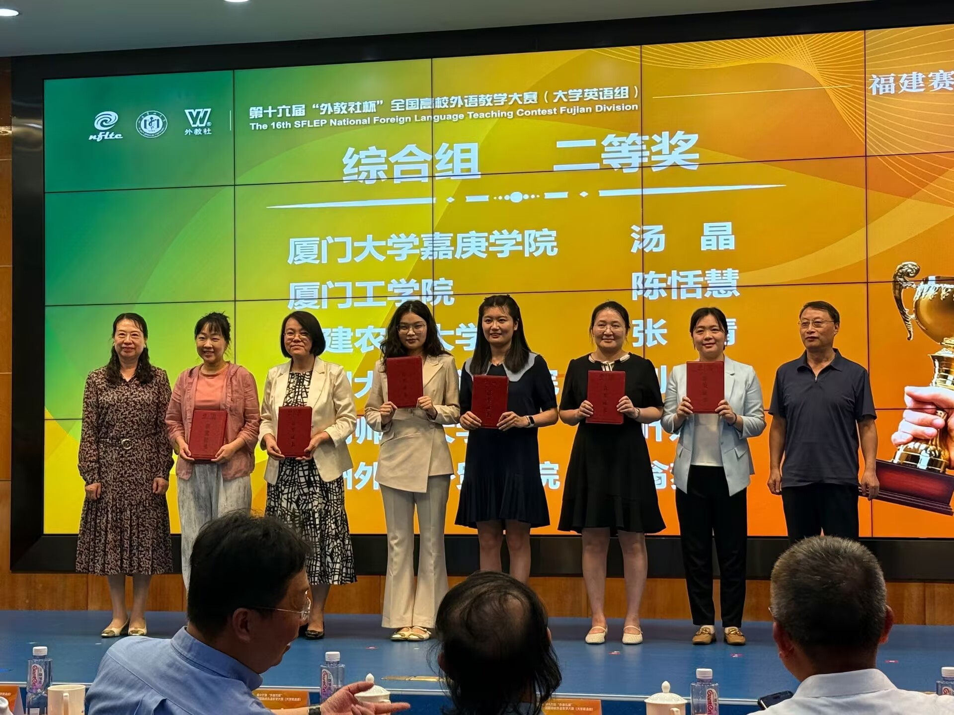 6月7日,第十六届“外教社杯”全国高校外语教学大赛福建赛区决赛于福建医科大学落幕。戴尔豪西大学联合学院(国际学院)公共外语教学部教师在此次赛事中成绩斐然,其中王佳佳老师荣获视听说组一等奖,张清老师斩获综合组二等奖。
