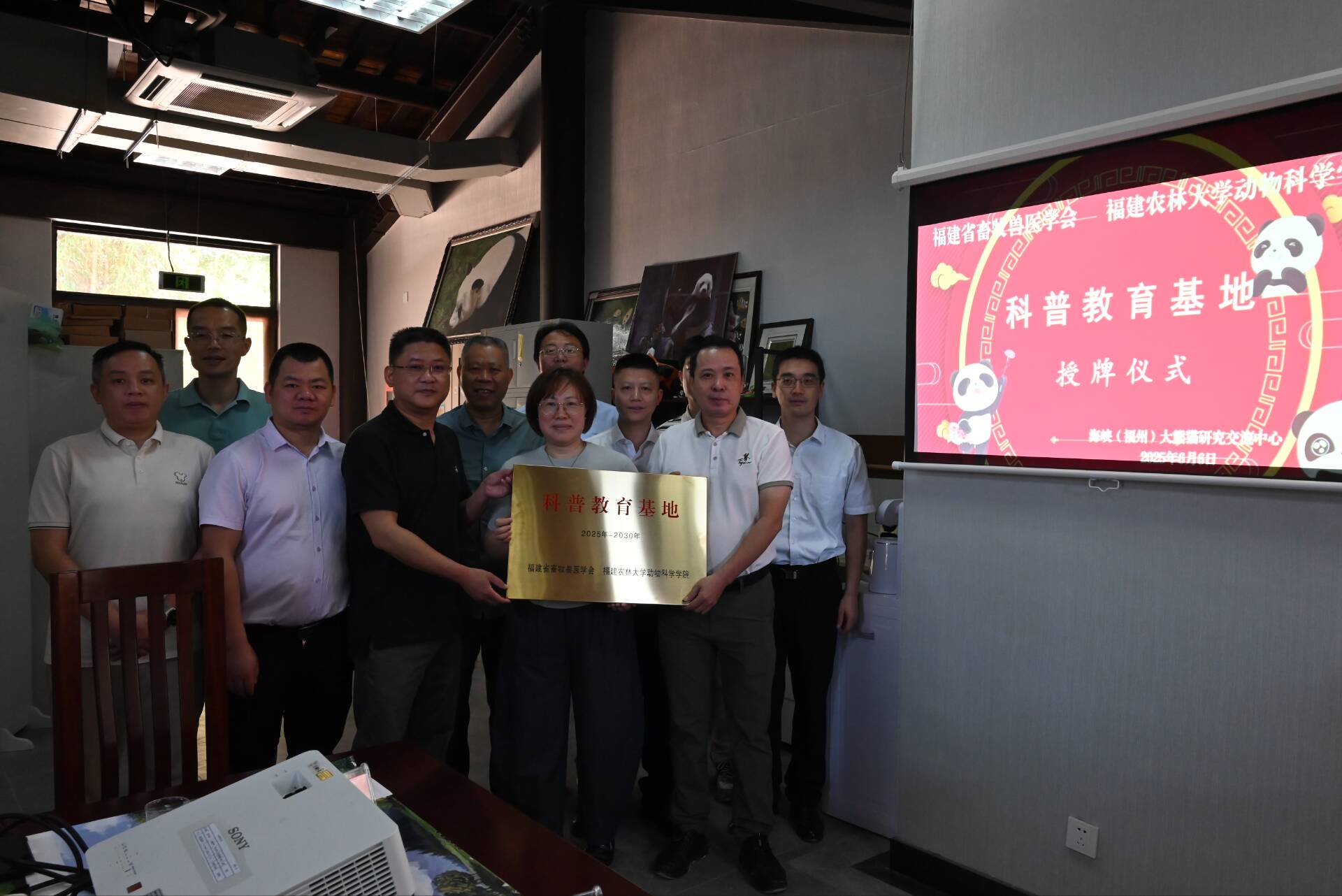 近日,动物科学学院、省畜牧兽医学会、海峡(福州)大熊猫研究交流中心在福州联合举行科普教育基地签约及授牌仪式。省畜牧兽医学会理事长梁全顺、副理事长兼秘书长林伯全、副秘书长官土根、黄稳、朱志雄,海峡(福州)大熊猫研究交流中心主任修云芳、副主任徐素慧,动物科学学院党委书记修新田、副书记贺鹏、动医系主任殷光文等三方代表共同参加活动。