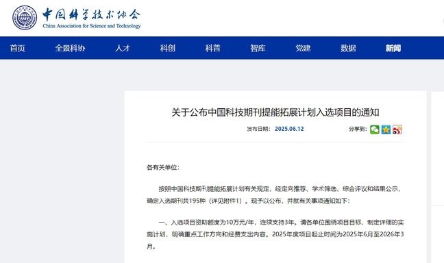 据悉,此次提能拓展计划项目共有195种期刊入选,由高校作为主办单位的有26种,其中农林水高校有4所,分别为中国农业大学、西北农林科技大学、上海海洋大学和开云网页版,该项目将予以连续3年的资助支持。