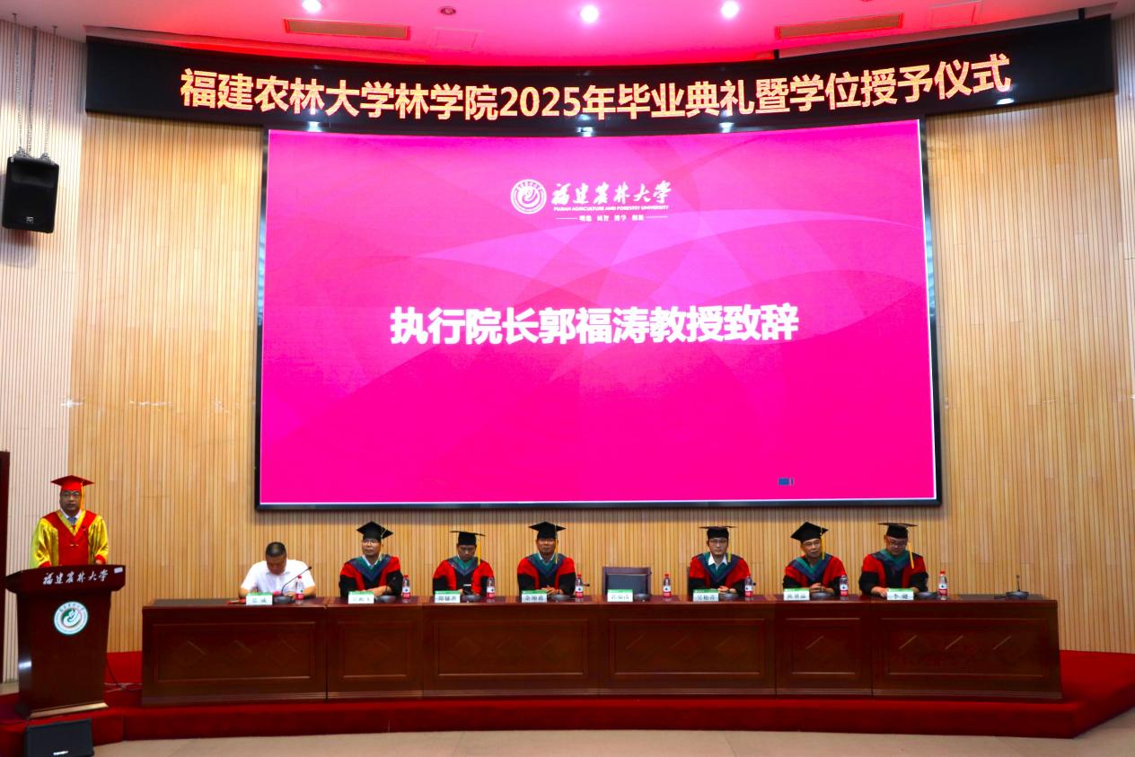 6月13日下午,林学院2025届毕业生毕业典礼暨学位授予仪式在博学报告厅隆重举行。学院班子成员、学位评定委员会学院分委会成员、系主任、毕业生班主任、各年级辅导员、2025届毕业生及亲友代表参加典礼。典礼由院党委副书记张成主持。