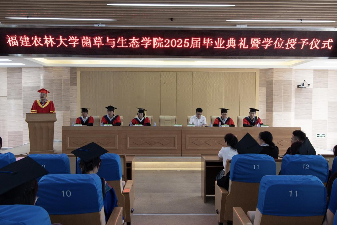 6月13日上午,菌草与生态学院2025届毕业典礼暨学位授予仪式在金山综合楼13楼报告厅举行。学院领导班子成员、系主任、班主任代表、辅导员、家长代表以及全体毕业生出席毕业典礼。典礼由院党委副书记李晓辉主持。