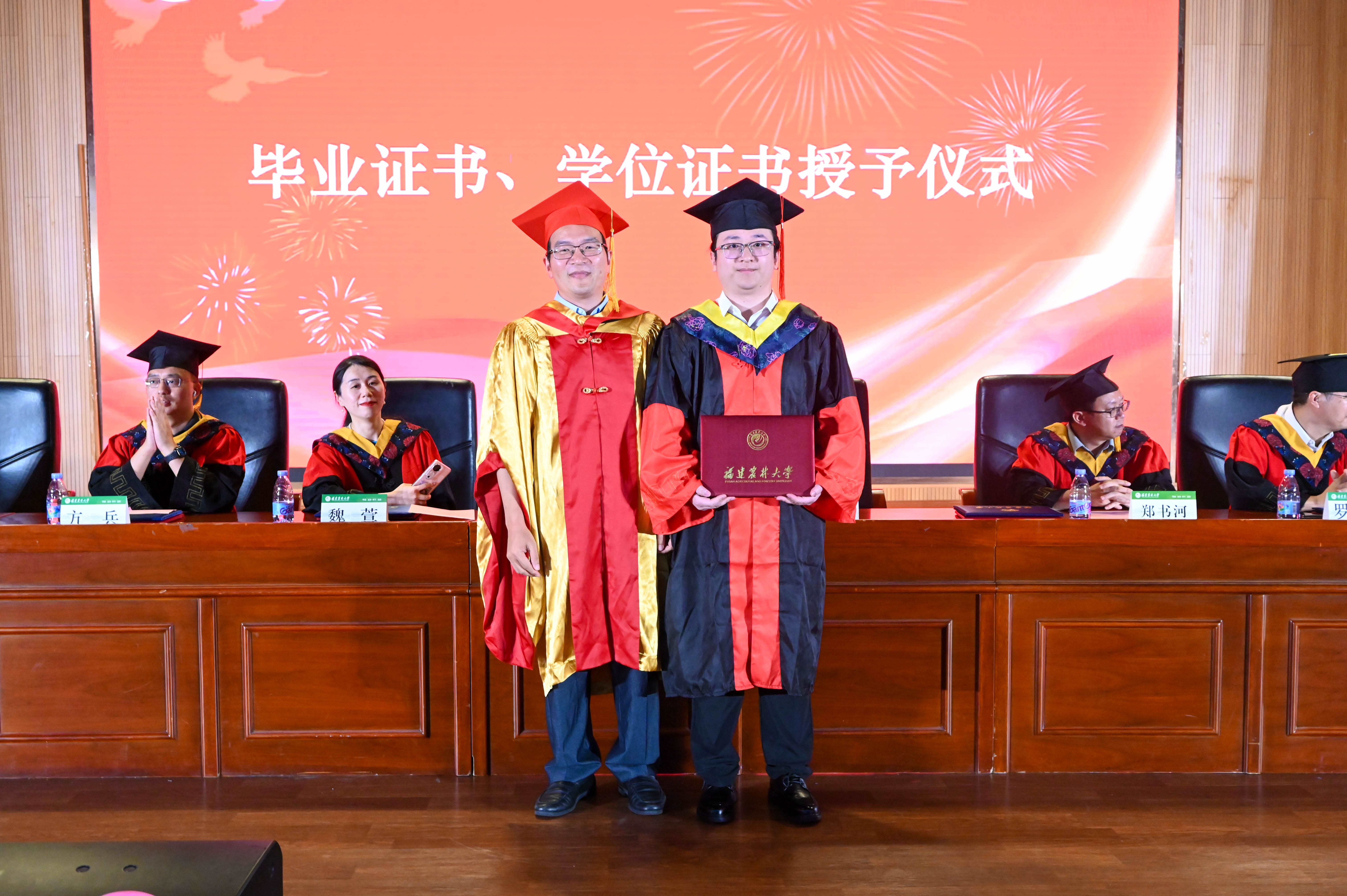 学院领导为优秀毕业生颁发荣誉证书,表彰他们在学术追求、实践创新和全面发展中的卓越表现,鼓励全体学子以他们为榜样,奋楫争先,勇毅前行。