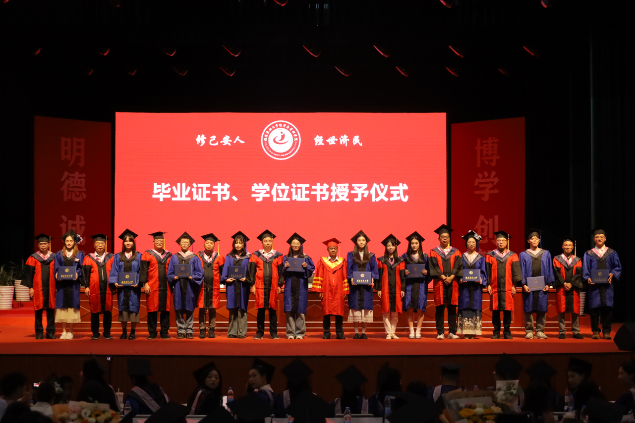 学位授予仪式上,院领导、各系老师为2025届全体毕业生拨穗正冠、颁发证书,并合影留念。