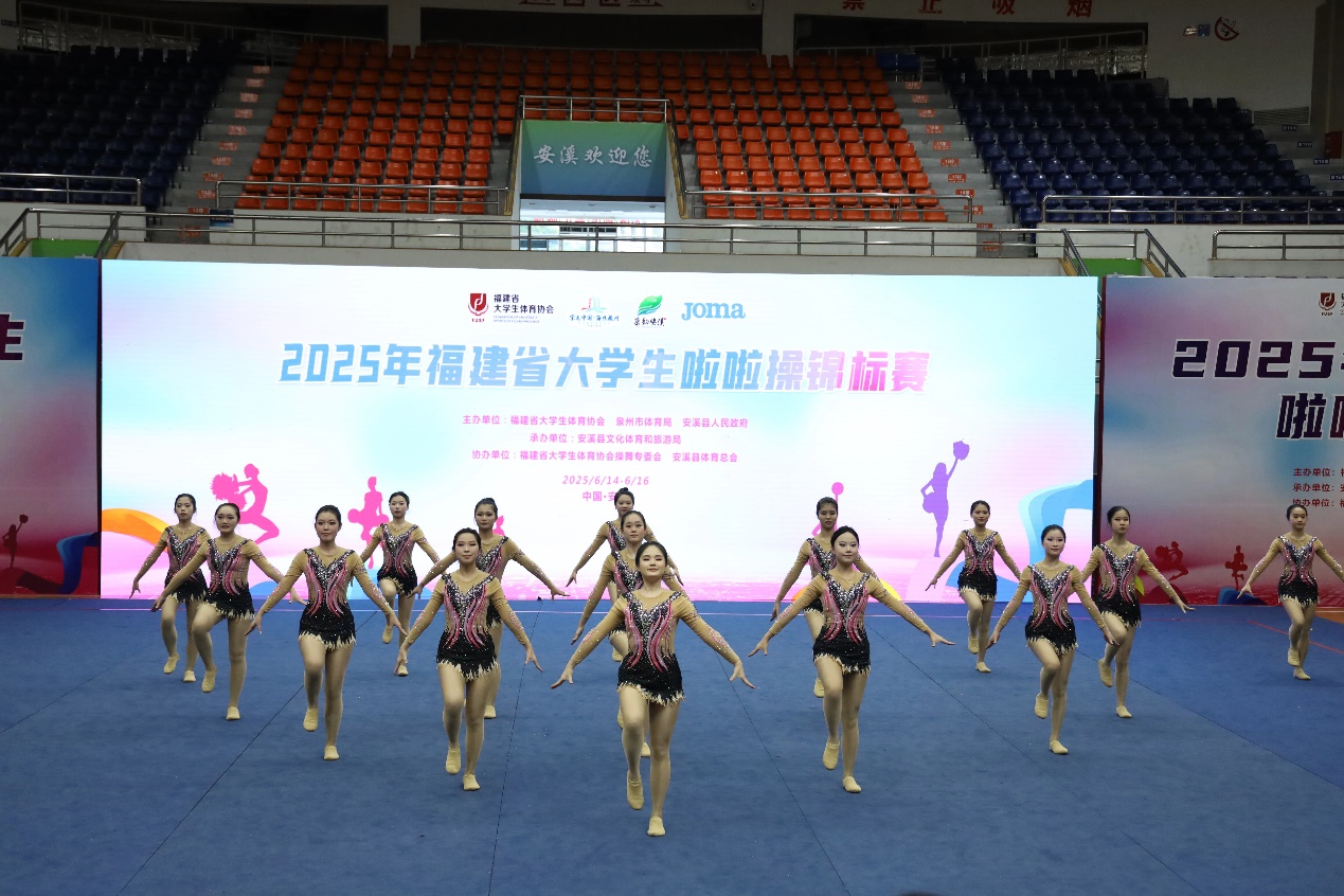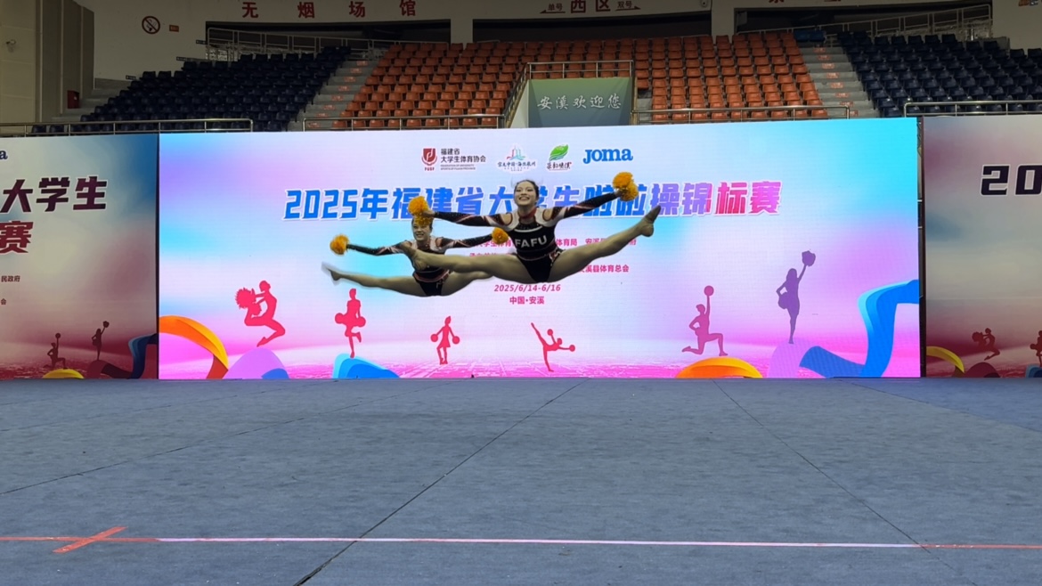6月15日,2025年福建省大学生啦啦操锦标赛于安溪梧桐体育馆圆满落幕。来自全省20所高校的300余名运动员齐聚于此,为荣誉而舞,为梦想而战,在欢呼声与动感的音乐交织中绽放光彩。