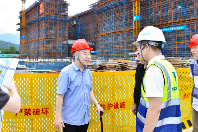 赖海榕认真听取项目建设情况汇报,仔细询问了项目规划、工程进度、施工安全保障等方面的情况,对项目建设取得的阶段性成果表示肯定,对一线干部职工的辛勤付出表示感谢。他强调,要锚定“双一流”建设目标,以更高标准、更严要求、更实举措推进旗山校区三期项目建设,为学校高质量发展提供基础保障和条件支撑。一要强化政治担当,开启建设加速度。要充分认识推进三期项目建设是拓展办学空间、优化资源配置、支撑学位扩容的战略工程,进一步增强责任感和紧迫感,发扬连续战斗的顽强精神,凝心聚力、鼓足干劲、真抓实干,在确保安全、质量、效益前提下,紧盯时间节点,科学组织施工,抢抓工程进度,确保项目按期优质交付,早日惠及师生。二要坚持精益求精,打造品质标杆工程。要构建协同机制,牢固树立“一盘棋”意识,相关部门要加强沟通、密切配合、形成工作合力,及时解决建设难题。要严把施工关、验收关,加强监督管理,强化工程质量管控,坚持精益求精,确保工程建设质量,打造品质标杆工程。三要严守安全底线,筑牢安全屏障。要压实安全生产“三方责任”,守住安全生产底线。针对暑期高温汛期特点和不利影响,强化重点环节监督和安全隐患排查,加强施工队伍规范化管理,严格落实安全生产规章制度,确保施工安全和人员安全。