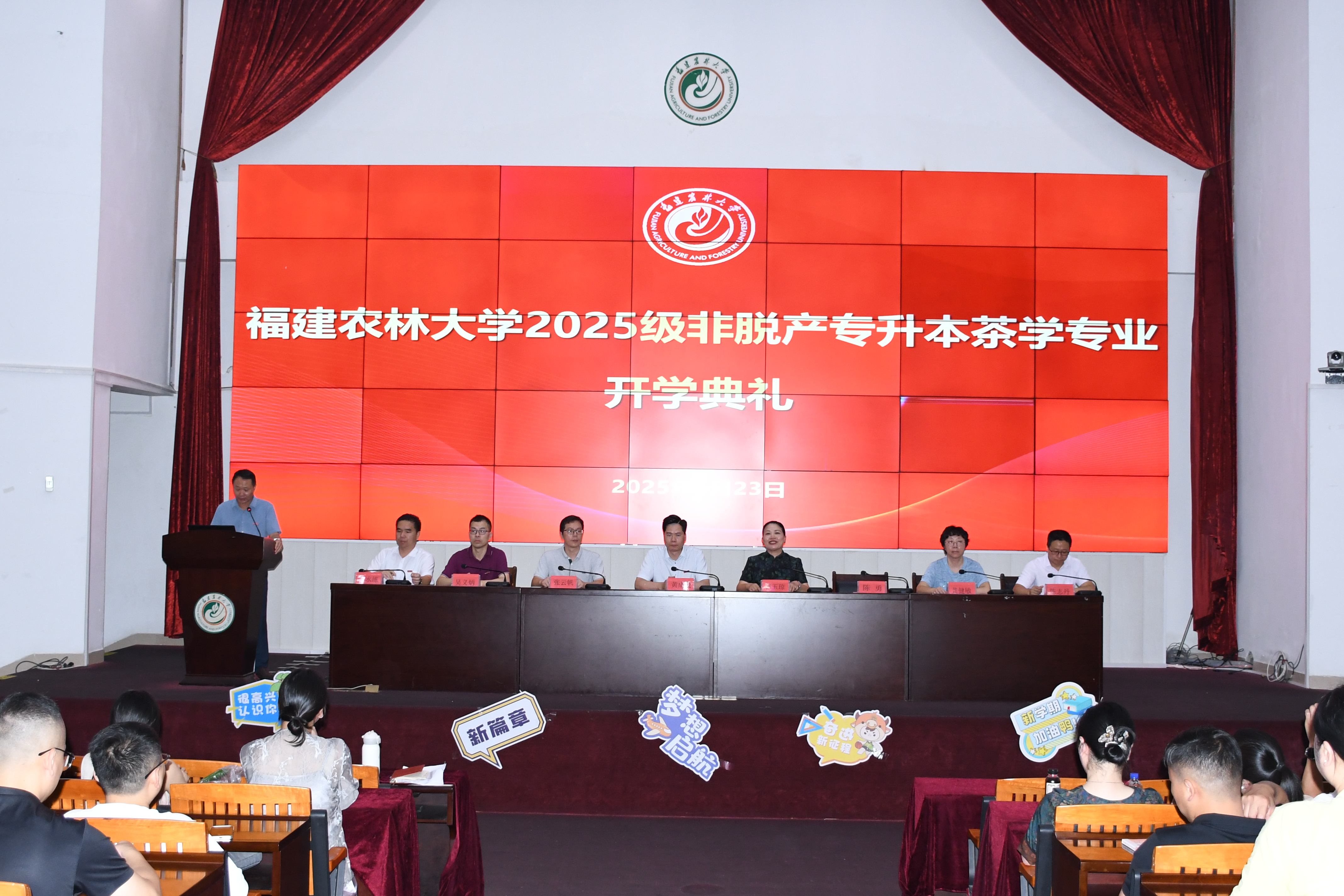 6月23日下午,安溪茶学院于安溪校区行政楼诚智报告厅举行2025级非脱产专升本茶学专业开学典礼暨新生入学教育及专业导论。学院领导班子成员、乡村振兴学院继续教育与培训部主任龚健敏、学院行政助理高水练、茶业科技系主任陈志丹出席开学典礼,全体2025级新生共274人参会,副院长陈勇主持典礼。