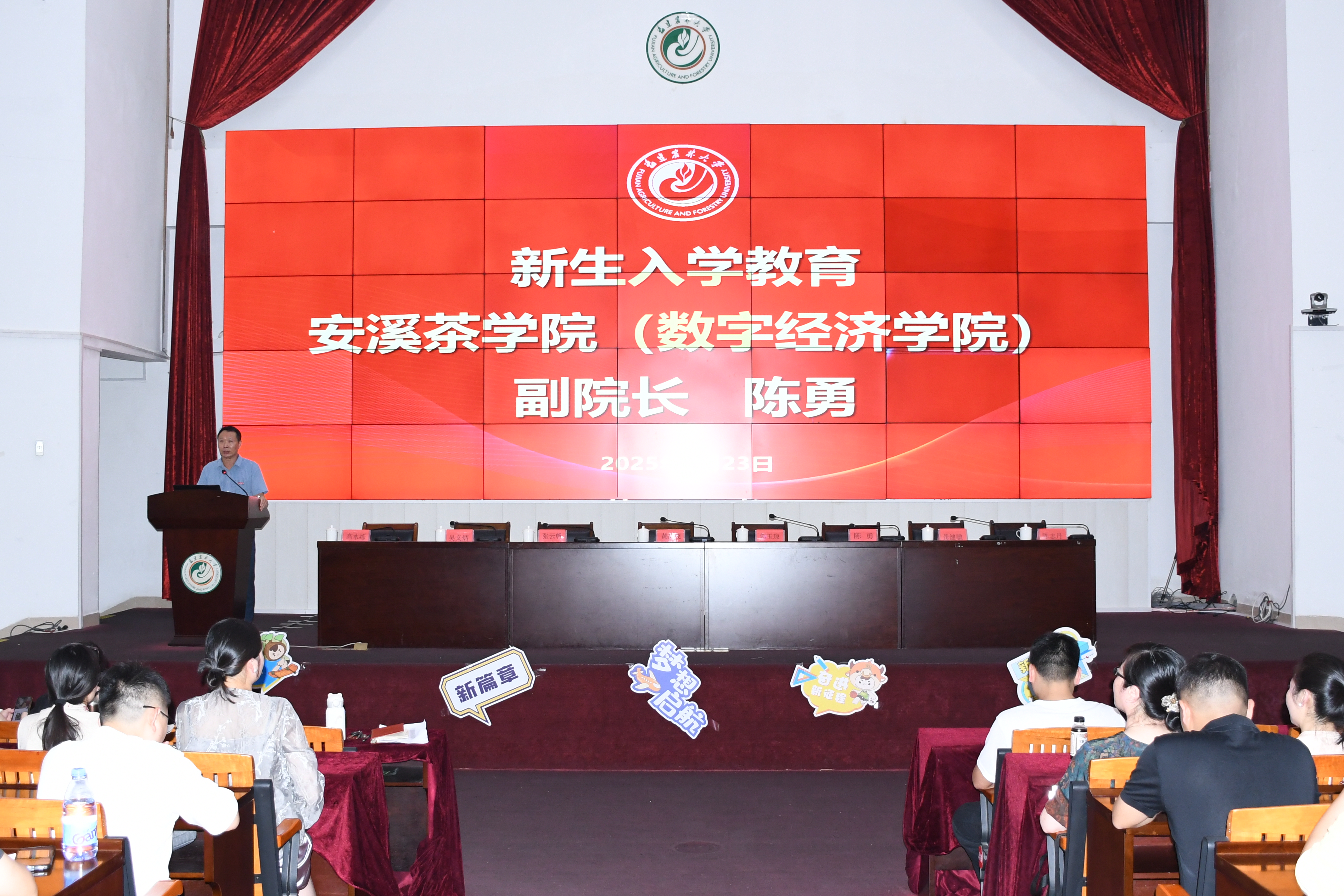 黄成茂在致辞中代表安溪校区7000多名师生员工对各位新同学的到来表示热烈的祝贺和诚挚的欢迎,向一直以来关心和支持安溪茶学院(数字经济学院)办学和发展的各位领导、社会贤达表示衷心感谢!他勉励同学们:一要勤学善思、惜时如金,坚定理想信念,坚持学以致用,树立终身学习理念;二要立德树品,秉承校训精神,砥砺“五种品格”;三要与学校“同频共振”,懂得感恩,爱校荣校,希望大家在校期间收获知识、收获友谊、收获成长,更收获属于自己的独特光芒!