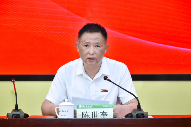 会上,陈世奎作题为“深入学习习近平文化思想,推动我校宣传思想文化工作开创新局面”的重点发言,并结合学习习近平文化思想,传达学习中央、省委关于意识形态有关制度和规定。宣传部汇报了学校宣传思想文化工作有关情况,植物保护学院、林学院、马克思主义学院、校团委先后作交流发言。