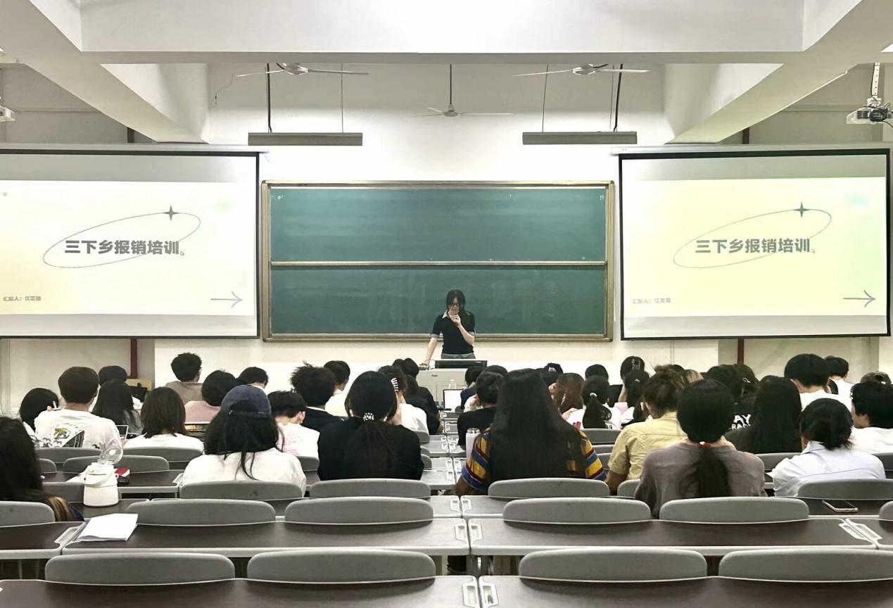 讲话结束后,学生代表为大家讲解“三下乡”实践活动守则并介绍基本安全事项。随后,学院各部门学生代表依次上台进行相关内容指导。学校融媒体中心校报记者团安溪站代表开展了“三下乡”对外宣传培训,讲解稿件要求和对接事项等基本内容;学院团委办公室代表则指导“三下乡”队伍学习报销流程,明确相关材料准备及申报流程;最后,学院红十字分会代表为大家进行急救知识培训,包括急救知识的介绍和急救技能的讲解,并进行现场演示。