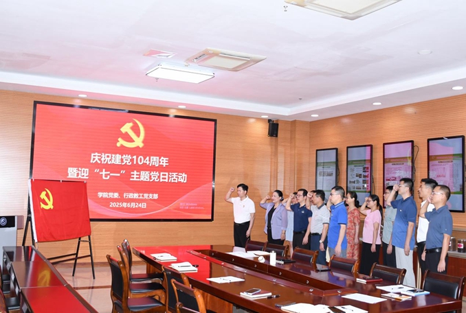 6月24日,安溪茶学院党委联合行政教工党支部举行庆祝建党104周年暨迎“七一”主题党日活动,学院党委班子成员和行政支部全体党员一起过集体“政治生日”。