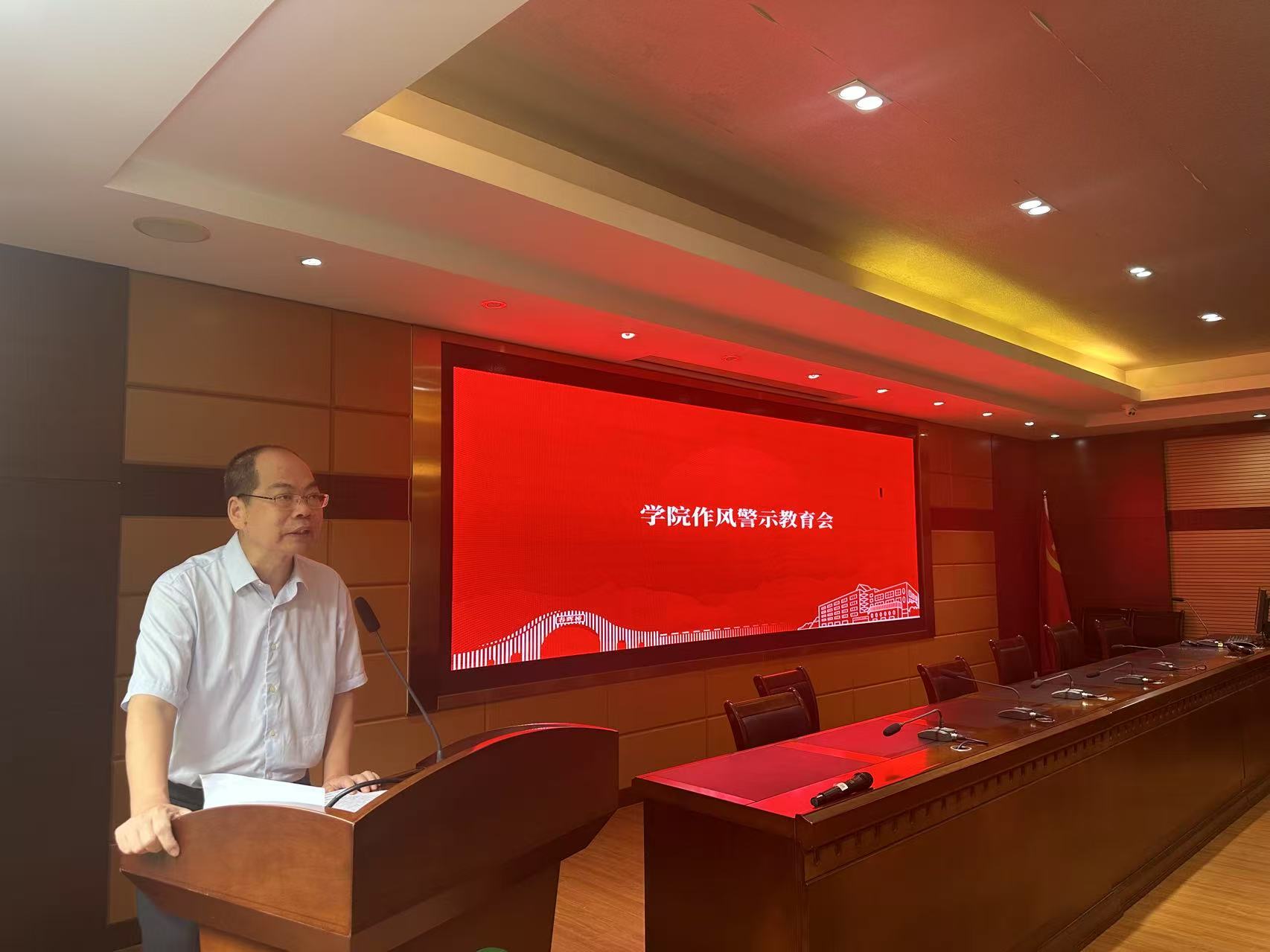 最后开展警示教育,学院纪委书记杨国永传达学习了《关于加强作风建设深入开展违规吃喝问题整治工作的通知》文件精神,通报了教育领域违反中央八项规定精神的典型案例以及我校部分违规违纪案例,与会人员还集体观看了《八项规定改变中国》纪录片。