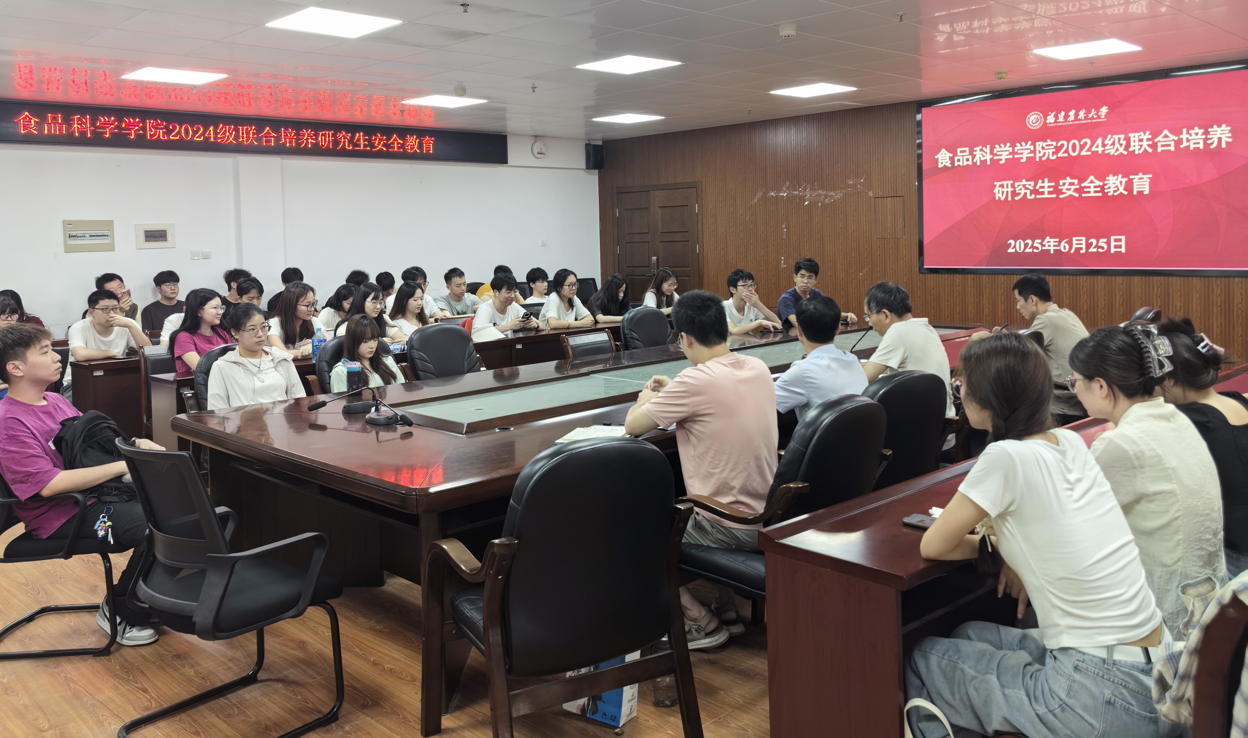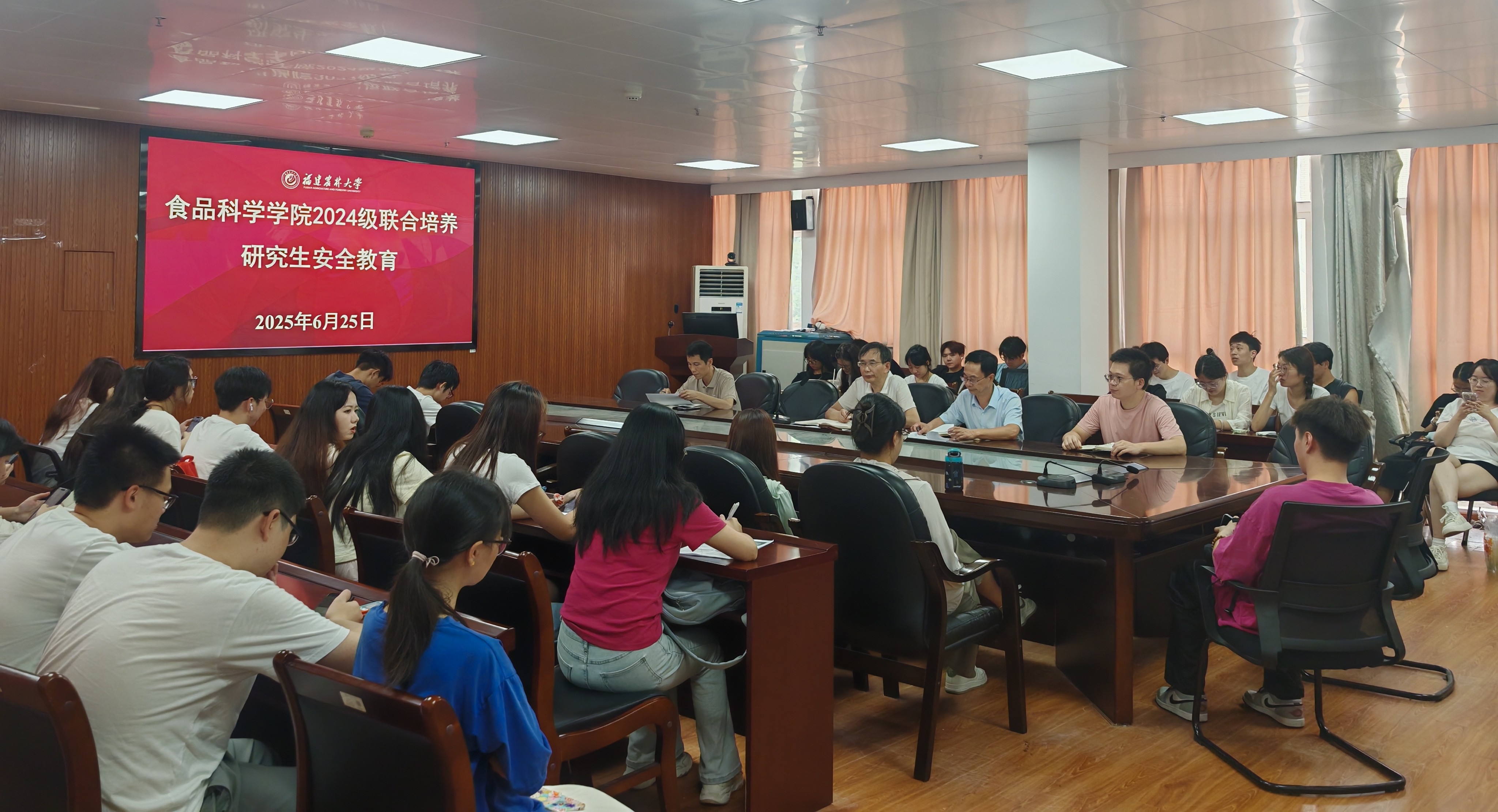 6月25日下午,食品科学学院在院办会议室召开2024级联合培养研究生安全教育专题会议。学院党委副书记吴有平、副院长林河通、研究生教育管理工作小组相关老师及2024级联合培养研究生70余人参会。会议由副院长林河通主持。