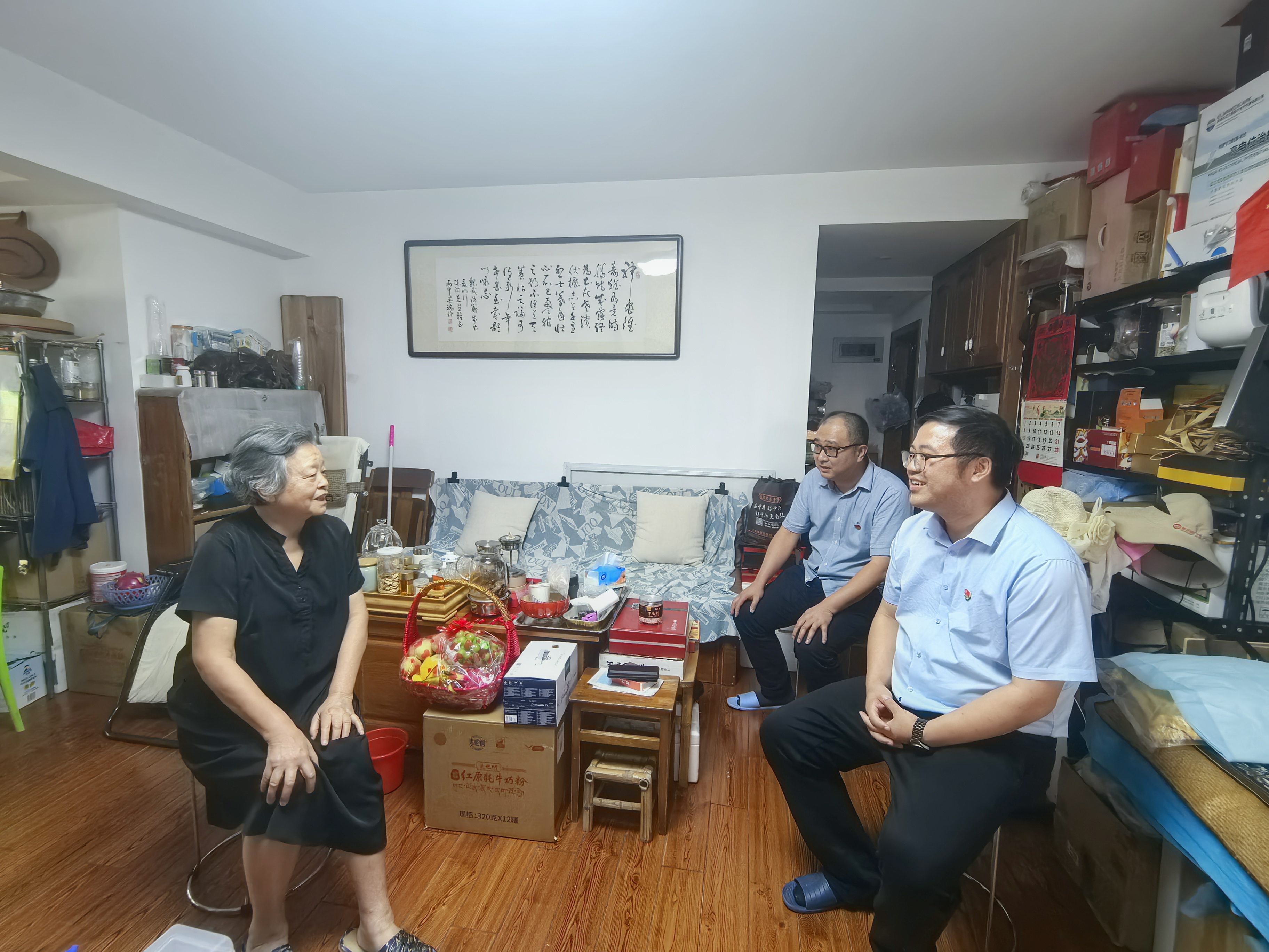 走访慰问中,学院领导一行与老党员亲切交谈,详细了解他们的日常生活、身体状况,向他们汇报了近期学校在奋进国家“双一流”高校中取得的成就以及学院发展情况,细心倾听退休老党员讲述往昔的奋斗故事和对学院发展的建议。学院领导一行感谢退休老党员为学院事业发展做出的积极贡献,表示老党员是学院的宝贵财富,学院将赓续红色传统,汲取奋进力量,把老党员对学院的期待融入到学院事业高质量发展中。