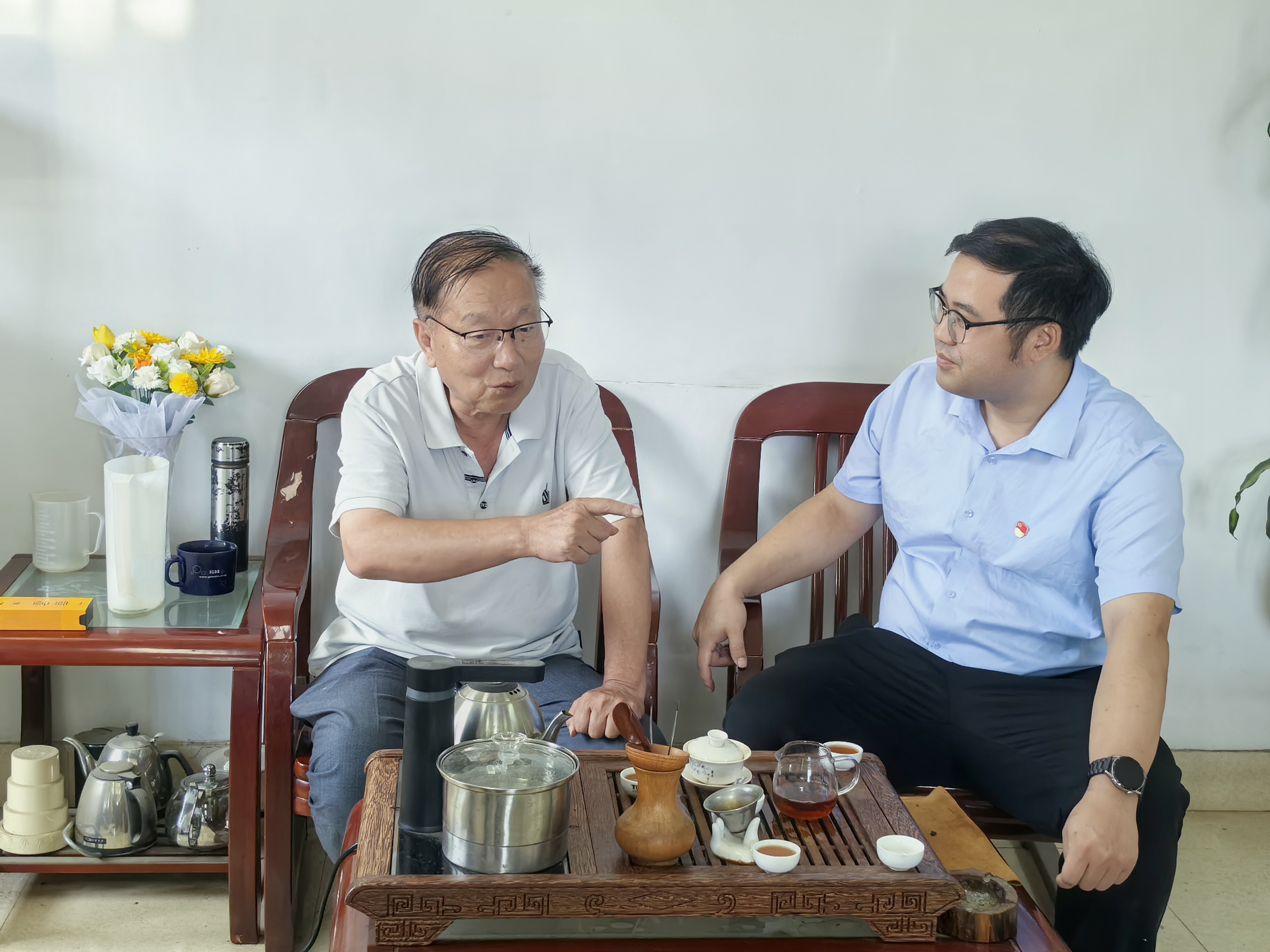6月30日,在中国共产党成立104周年之际,农学院党委副书记(主持工作)林喜强、副书记吴荣辉、学院党政办主任走访慰问退休教工党员代表梁康迳、卢勤,为他们送去党组织的关心和节日祝福。