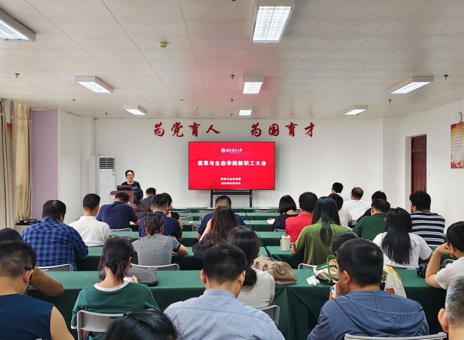 近日,菌草与生态学院在金综楼B401会议室召开全院教职工大会暨期末安全稳定工作会议,全体教职工参加会议。会议由学院党委书记陈月霄主持。