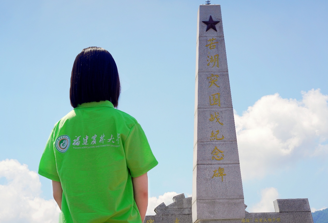 上午九时,实践队全体队员肃立于眉山乡苦湖突围战纪念碑前,聆听讲解员讲述闽南游击队红二支队以少胜多、浴血突围的光辉战史,并向在战斗中英勇牺牲的革命先烈默哀致敬。