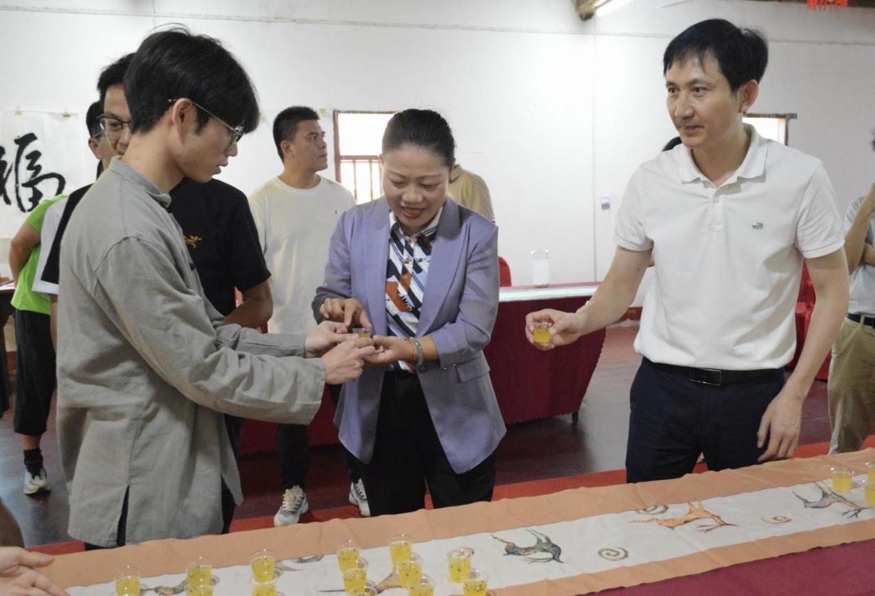 6月30日,安溪茶学院(数字经济学院)携手南安市眉山乡政府在皇旗尖生态茶园联合举办新式茶饮调制与特色文创展示活动。安溪茶学院(数字经济学院)院长郭玉琼、院党委副书记张云帆,眉山乡党委书记傅清霖、眉山乡综合执法队队长潘德超,皇旗尖生态茶庄园负责人黄宝贵,茶学院教师刘路星、林东艺、郭贤娜,与学院师生代表齐聚一堂,共同见证校地共建的丰硕成果。