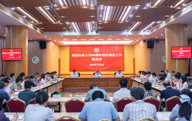 在听取汇报后,兰思仁强调,校党委、校行政高度重视校庆筹备工作,要凝心聚力统筹做好各项工作。一要强化组织领导,压实压紧责任。相关部门、学院协同联动,加快推进校庆办实体化运行,建立“两周一调度、每月一通报”机制,形成责任清晰、协同高效的推进格局,保障校庆筹备工作稳步落实、高质量推进。二要突出鲜明主题,彰显特色亮点。要高度凝练90周年校庆主题,充分体现学校历史底蕴与发展愿景,深刻表达校庆活动的意义与内涵,办出特色、办出风采,积极营造更加浓郁的校庆气氛,激发全体福建农林大人对母校的深厚情感。要打造人文校庆、学术校庆、数字校庆。三要广泛宣传动员,营造浓厚氛围。拓宽宣传渠道,创新宣传载体,院系联动、线上线上相结合实现宣传全方位覆盖,人人都要成为学校建设发展成效的宣传员、广播员、代言人,全面系统地推进各项宣传工作。四要统筹协调资源调配,形成整体合力。聚焦校庆核心目标,抓住重点活动、重要项目等关键任务,集中资源、精准发力、一抓到底,确保各项重点工作有力有序推进。五要厉行勤俭节约,务求工作实效。要深入贯彻中央八项规定及其实施细则精神,秉持节俭办校庆原则,科学规划活动规模,严格控制经费支出,坚决反对铺张浪费,不搞形式主义,杜绝华而不实的“面子工程”“形象工程”,把每一分钱用在刀刃上,确保校庆活动既隆重简朴,又富有实效。