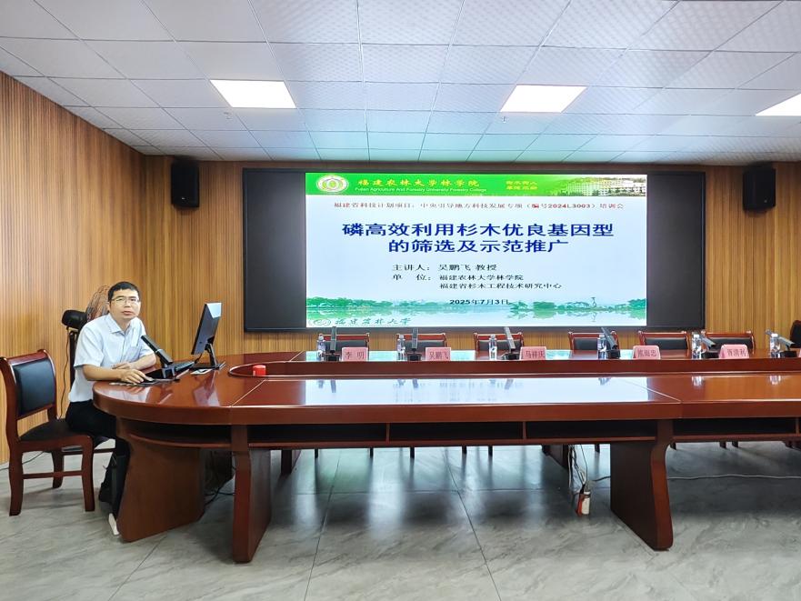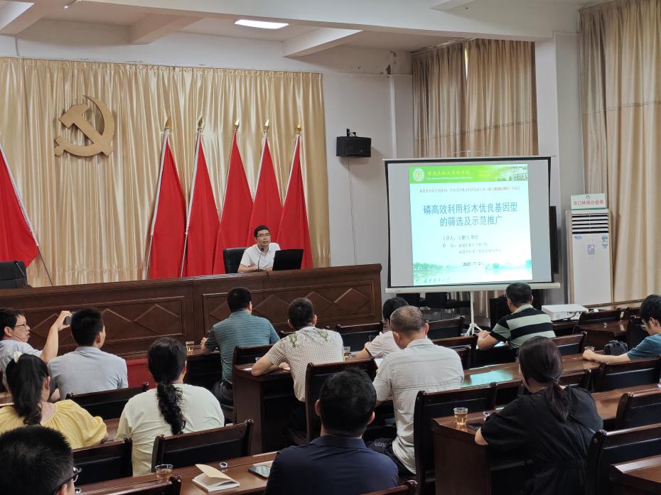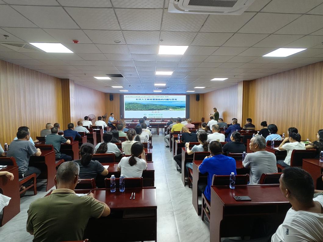 吴鹏飞教授围绕中央引导地方科技发展专项《磷高效利用杉木优良基因型的筛选及示范推广》研究成果,以同名主题展开授课,重点阐述了基于磷高效杉木基因型选育防治杉木连栽地力衰退的机理、应用与示范,将团队杉木人工林可持续经营的核心技术推广至生产端,既为林农提供了可复制、易操作的技术方案,也通过收集一线反馈反哺科研,形成“科研-服务-学科提升”的良性循环。